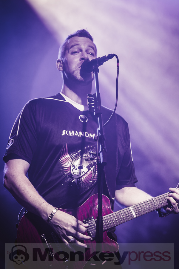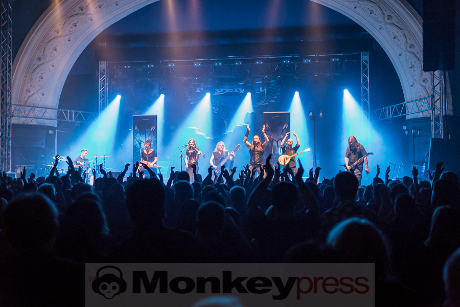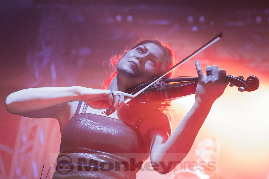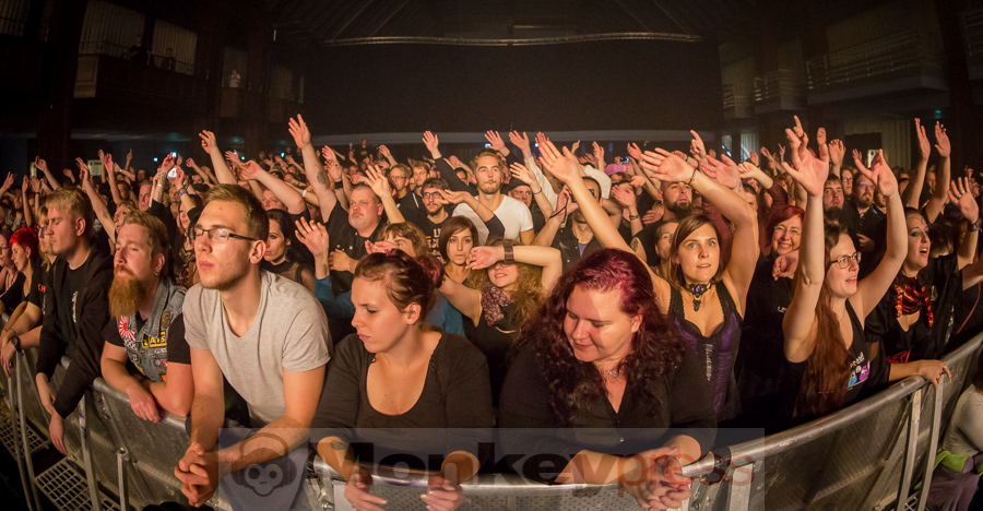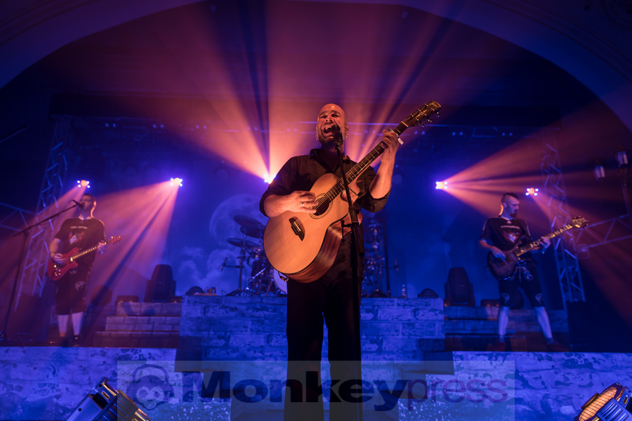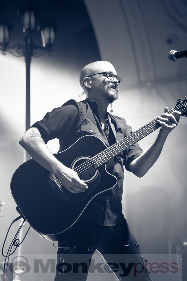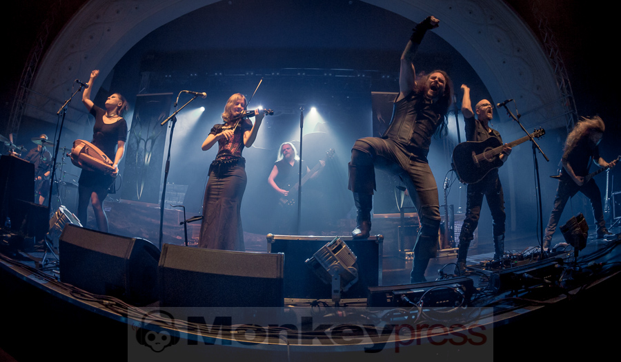 Während auf der Bühne in kürzester Zeit umgebaut wurde, hörte man im Backstage-Bereich, wie einige Instrumente bereits eingestimmt wurden. Die Vorfreude stieg dadurch noch mehr an. Unter viel Applaus und Gegröle kamen die Mitglieder von Schandmaul einzeln auf die Bühne. Die stimmige und tolle Beleuchtung offenbarte ein einzigartiges Bühnenbild – Eine Stadt im Hintergrund, die Podeste als Kaimauer und auf der Bühne ein paar Straßenlaternen, das Publikum sollte das Meer darstellen, welches auch zu späterer Stunde immer wieder zu Aktionen aufgefordert wurde. Die Fans sind vom ersten Ton an mit dabei und machen mit. Als das erste Lied Orleans verklungen war, bedankte sich Sänger Thomas Lindner erstmal beim Publikum für Platz 1, des neuen Albums, in den Charts. Schandmaul präsentierten einen guten Mix aus neuem und altem Liedgut, wobei bei den älteren Stücken die Fans textsicherer waren und lauthals mitsangen. So auch bei Drachentöter, es wird vom ersten Ton an mitgegrölt und gejubelt und bis zum Ende mitgesungen. Zwischen den einzelnen Songs gab Fronter Thomas immer wieder eine passende kurze Geschichte zum Besten, die das nächste Stück ankündigte. Bis in die hintersten Reihen sangen die Fans mit, sprangen auf und nieder, kamen der Aufforderung der Band nach, das Meer mit schwingenden Armen nachzuahmen und huldigten der Darbietungen immer mit viel Applaus. Während Anna und Birgit sich auf der Bühne unter sehr viel Jubel ein Instrumental-Duell bei der Akkustikversion Käptn Coma lieferten, nahmen sich die Leute in die Arme und sprangen zusammen zum Takt der Musik. Beim Teufel-Trinklied schmetterte der ganze Saal den Text mit und statt „Zugabe“-Rufen nach dem vermeintlich letzten Lied Dein Anblick sang das Publikum den Refrain „die Sonne, die Sterne tragen Kunde von dir, jeder Lufthauch erzählt mir von dir…“ immer weiter, bis die Band für die Zugabe zurück auf die Bühne kam – Gänsehautfeeling pur. Bevor dann das letzte Lied angestimmt wurde, kam noch der Fangesang „oh oh oh Schandmaul“ – Thomas sichtlich gerührt, ließ den Moment auf sich wirken, bis er den Schlussakkord anstimmte. Ein sehr schönes Konzert, mit vielen Gänsehaut-Momenten, schöner Bühnenkulisse, super Lichtshow und Akustik, tollen Fans die mitmachten, Schandmaul wie auch Krayenzeit durch den Abend trugen und mit zwei Bands, die zu unterhalten wussten.