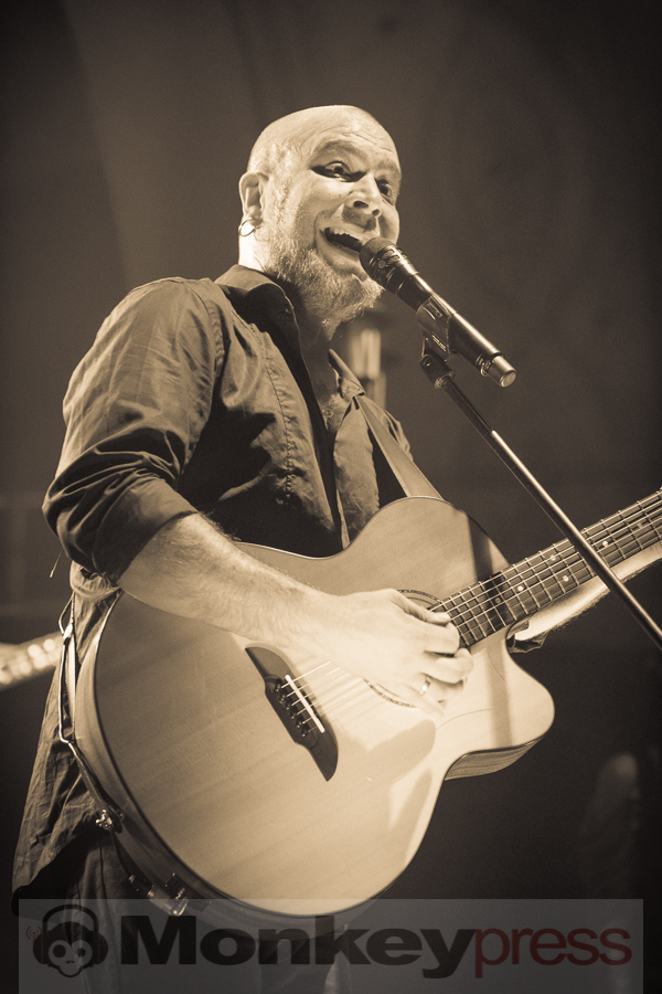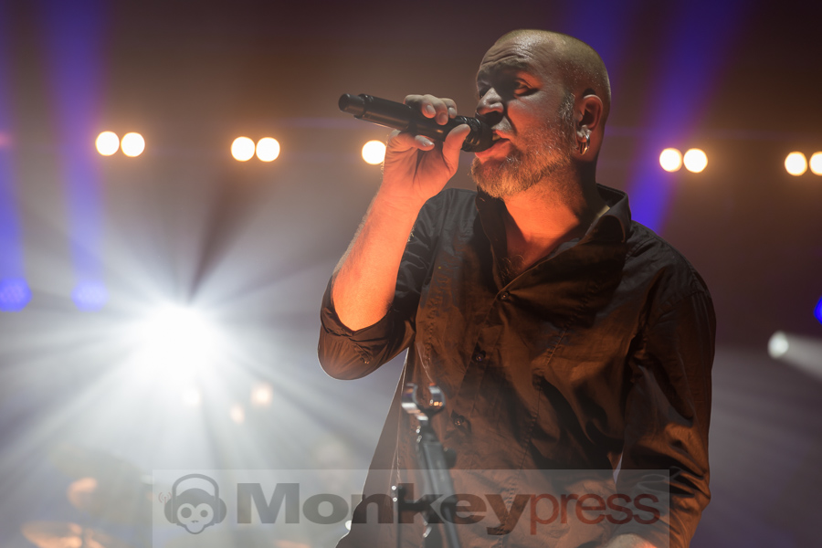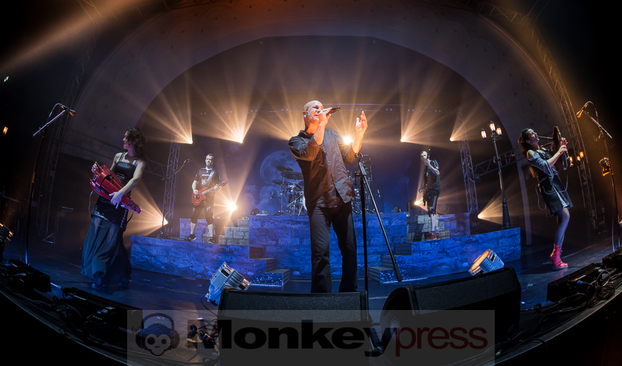 Pünktlich ging es dann auch mit dem Support Act Krayenzeit los. Gleich zu Beginn animierte Fronter Markus Engel die Gäste zum Mitklatschen, die vorderen Reihen bis zur Mitte folgten ihm und unterstützen die Band bei den ersten Klängen. Die Akustik, beim ersten Lied noch eher schlecht als recht, ist dann aber ab dem zweiten Lied gut eingestellt, so dass auch das Publikum die Texte gut verstehen konnte und bei Noli Timere Messorem bereits einige Fans den Refrain mitsangen bzw. -summten. Bei Von der Fahrt übers Meer bat die Band das Publikum um seine Unterstützung, diese sollten mit nach oben gestreckten Händen das Meer symbolisieren. Was auch gut funktionierte. Viele Arme bewegten sich im Einklang mit der Musik nach links und rechts – zu Beginn erst langsam und dann immer schneller werdend bis dies dann in Beifall mündete. Dass Sänger Markus Engel nicht nur eine klare und unverwechselbare Stimme hat, sondern auch Flöte spielen kann, stellte er zwischendurch auch unter Beweis. Die sieben Leute von Kreyenzeit verbreiteten eine gute Stimmung. Die Musik ergänzte wunderbar den Hauptact und heizte den Massen ein. Allerdings brauchten die letzten Reihen etwas bis sie in die Gänge kamen. Spätestens beim vorletzten Lied Fegefeuer blieb aber kein Bein mehr ruhig, man konnte gar nicht anders als mitzuwippen. Unter viel Applaus verabschiedete sich die Band sichtlich erfreut von der Bühne und der Drummer warf zum Schluss noch seine Sticks ins Publikum.
