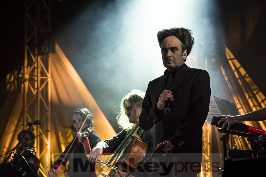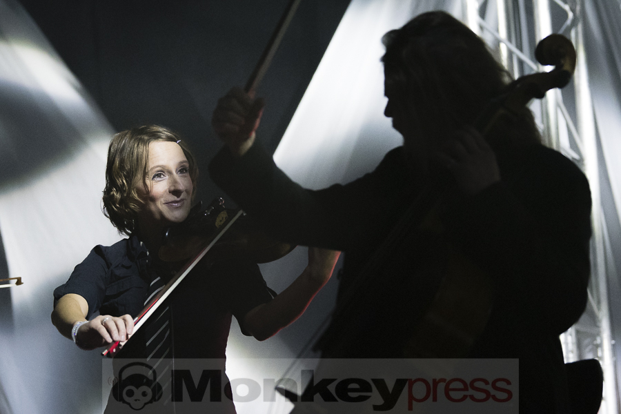 Während einer kurzen Pause konnte man sich dann die Beine strecken, noch ein Getränk nachlegen und eine der hellblauen Decken, die am Zugang zu den Plätzen verteilt wurden, erbeuten, um den frostigen Temperaturen zu trotzen. Auch im zweiten Teil trat Frau Lutzenberger auf und löste regelrechte Begeisterungsstürme nach Omnis Mundi Creatura aus, ein Stück, bei dem sie durch die hübsch aussehenden Violinendamen gesanglich unterstützt wurde. Ein genauerer Blick auf die Bühne gab dann auch Igor Zotik preis, der sonst mit Herrn Veljanov auf Solopfaden wandelt. Müsste man einen All-Time-Hit der Lakaien benennen, so wäre es wohl Reincarnation, das auch an jenem Abend in Bochum nicht fehlen durfte. Anders als bei anderen Bands, wurde da aber nicht lautstark mitgesungen oder gefeiert, sondern eher still genossen (wie eigentlich das ganze Konzert über). Fans der Lakaien sind schon ein seltsames Völkchen, wenn man das so sagen darf. Seltsam, aber lieb. Während der Stücke herrschte Stille, nach jedem letzten Ton folgte ein tosender Applaus und lautstarke Liebesbekundungen aus dem hinteren Publikumsbereich.