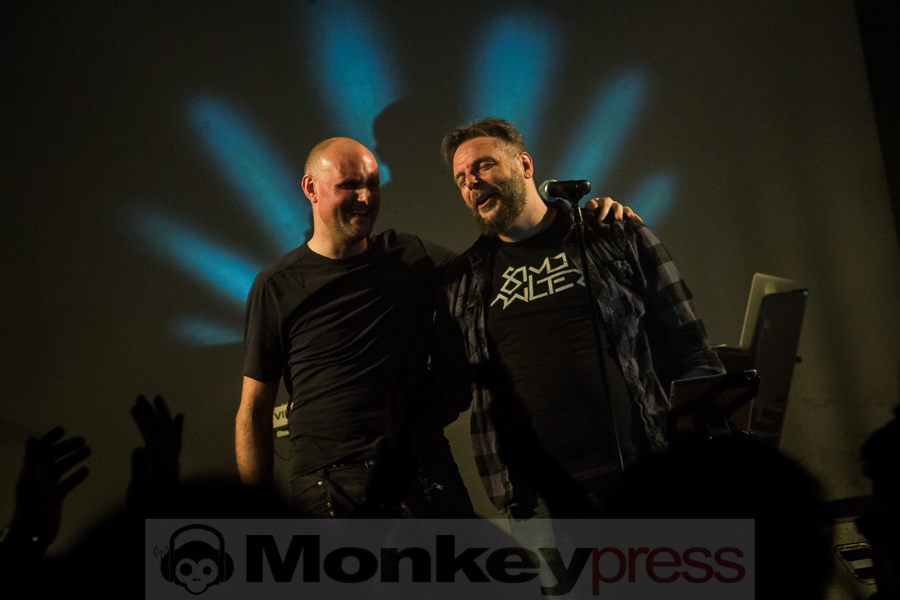 Nach etwa 20 Minuten Umbaupause geht es dann endlich mit dem Headliner des Abends weiter. Henning Verlage (Keyboards und Produktion) startet das Intro und kurze Zeit später betritt Neuroticfish Frontmann Sascha Mario Klein die Bühne. Sofort ist die Menge in Partylaune und mit Silence geht es alles andere als leise los. Mit The Bomb und Wake Me Up folgen weitere Dance Tracks bevor es mit Suffocating Right etwas ruhiger wird. Nach dem Song gibt es aufgrund technischer Probleme eine kurze Unterbrechung, die Sascha für Smalltalk mit dem Publikum nutzt. Henning, der wegen eines Bänderriss nur mit starken Schmerzmitteln auf der Bühne stehen kann, hat das Problem allerdings schnell behoben und weiter geht es im Programm mit dem neuen Song Agony. Von der gleichnamigen EP folgt ein wenig später auch noch Civilized, welches das erste Mal live gespielt wird. Auch die weiteren Nummern wie M.F.A.P.L. und Velocity sorgen dafür, dass die Menge tobt, tanzt und mitsingt. Ohne Frage, Neuroticfish haben den Kulttempel fest im Griff. Doch wie es leider immer so ist, auch das schönste Konzert neigt sich irgendwann seinem Ende zu und so verabschieden sich die Bochumer nach They`re Coming To Take Me Away von ihren Fans. Mit Hospitality (Regained) und zwei weiteren Songs gibt es noch die erwartete Zugabe bevor die beiden letztendlich die Bühne verlassen. Doch das Publikum hat immer noch nicht genug und so gibt es einen weiteren Zugabeblock bevor Sascha und Henning am Merchstand fleißig Autogramme schreiben und für Fotos posieren.