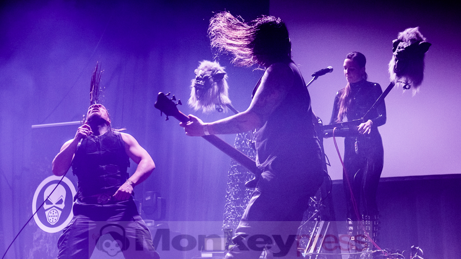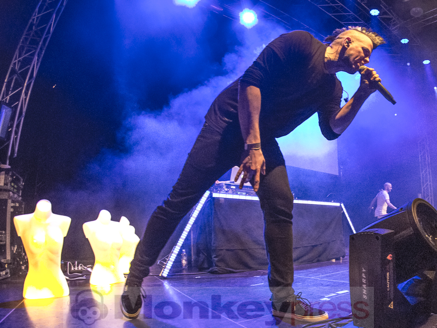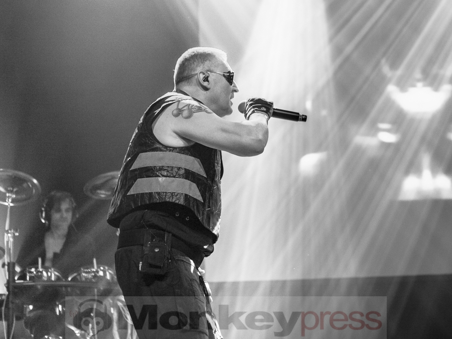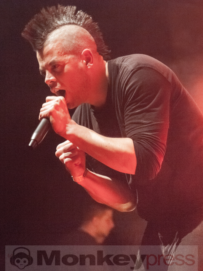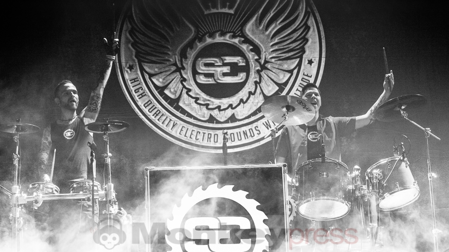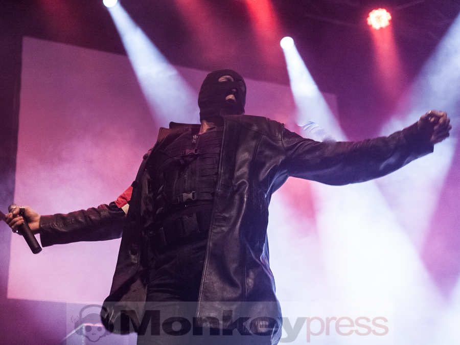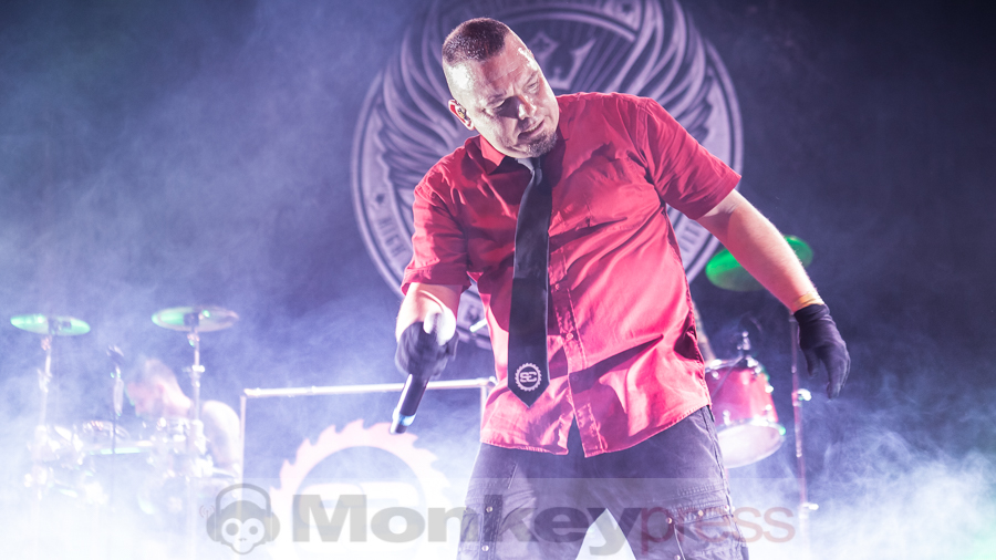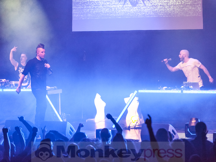 Für den nächsten echten Aha-Effekt sorgte gegen 20 Uhr Olli von Agonoize, dummerweise eher unfreiwillig. Er wollte seinen Fans ganz nahe sein – beachtete dabei allerdings nicht, dass zwischen Bühnenrand und Publikum noch ein Fotograben liegt. Dieser war aufgrund der folgenden Kunstblut-Show zur Sicherheit mit einer Plane abgehängt, Olli stieg auf eben diese Plane – und schwupps, weg war er. Sah nicht gesund aus, den folgenden Auftritt zog „Germany’s most extreme electro act“ aber in aller Professionalität und wieder mit vielen Showelementen durch.