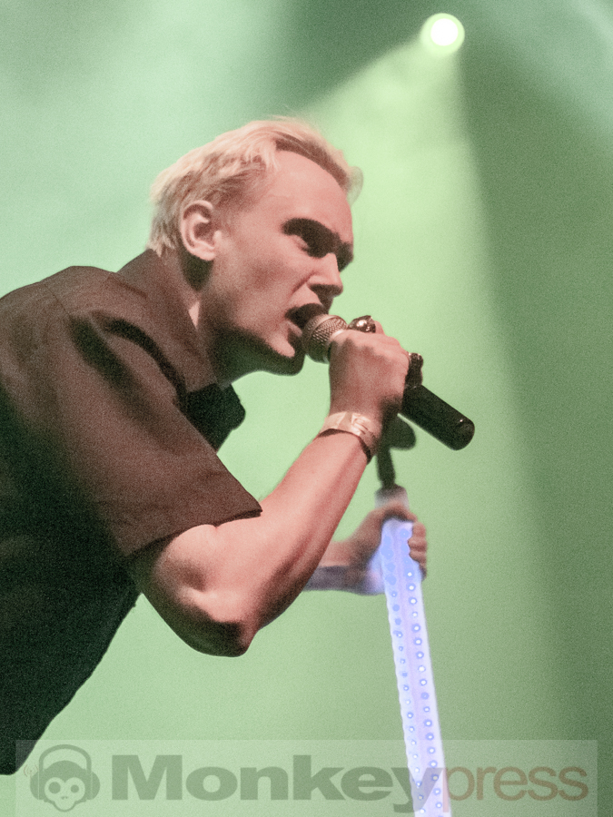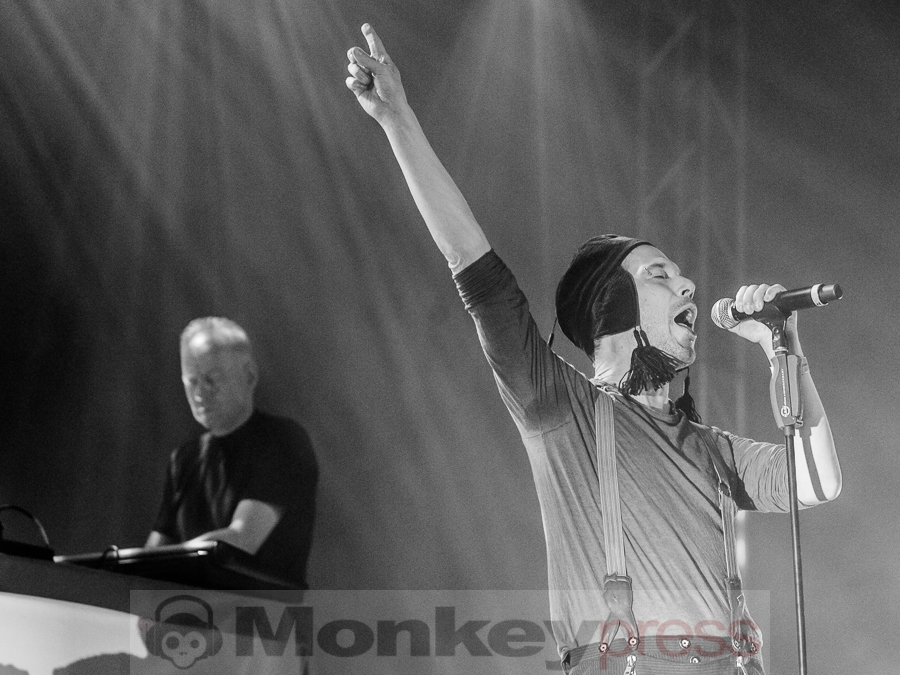 Als komisch dürften viele unterdessen die Setlist bezeichnen, welche der dritte und größte aller schwedischen Acts an diesem Samstag darbot. Covenant kamen mit wenigen Minuten Verzögerungen, alle warteten auf die Hits – und was machen Eskil Simonsson, Daniel Jonasson und Daniel Myer? Sie spielen Replicant, Shelter und Edge Of Dawn vom 1994er-Debütalbum Dreams Of A Cryotank, eine Remix-Version von Go Film sowie die eher komplexen Cold Reading und Morning Star vom gewollt experimentellen aktuellen Album The Blinding Dark. „I think this is the right time to play these songs“, sagte Eskil und wirkte dabei kein bisschen reumütig. Warum auch? Die „Die hard“-Fan-Fraktion hat dieser erfrischende Festivalauftritt sicherlich erfreut. Am Ende rissen bei We Stand Alone ohnehin alle wieder die Hände in die Luft und sangen kräftig mit.