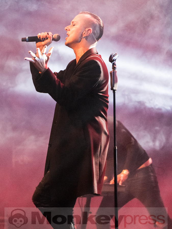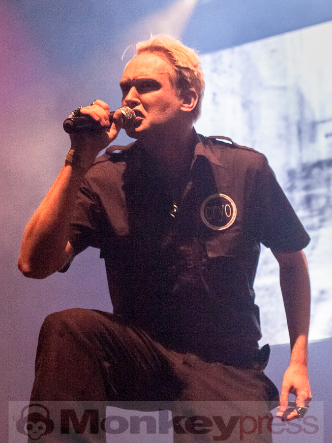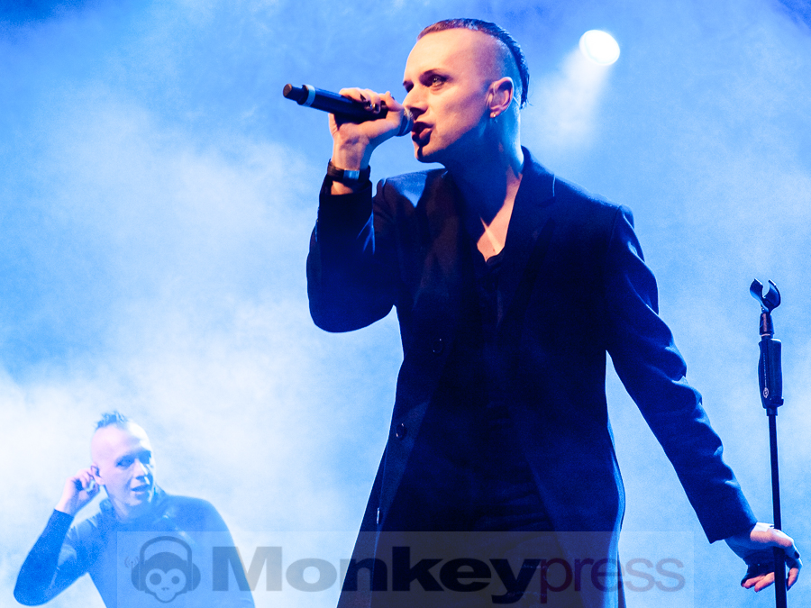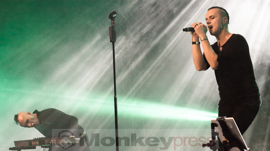 Im Anschluss wurde es wieder melodischer. Cryo folgten auf der kleineren Stage auf ihre schwedischen Kollegen, mit denen sie sinnvollerweise gemeinsam anreisten, in Halle 1 spielten In Strict Confidence eins ihrer zuletzt immer populärer werdenden Vintage Sets. Was bedeutet: Keine echten Drums, keine Gitarren und zum Leidwesen vieler keine wunderschöne Nina De Lianin am zweiten Mikrofon. Dafür aber ganz viele tolle Songs aus den frühen Jahren der Bandgeschichte. Etwas ungewohnt war es zwar schon, Engelsstaub im Refrain mal mit männlicher Stimme zu hören, dies tat dem Spaß aber keinen Abbruch. Das uralte Kiss Your Shadow setzte dann nach 40 Minuten einen viel zu frühen Schlusspunkt. Mal sehen, wann Dennis Ostermann auch sein kürzlich erschienenes Album The Hardest Heart auf die Bühne bringt…