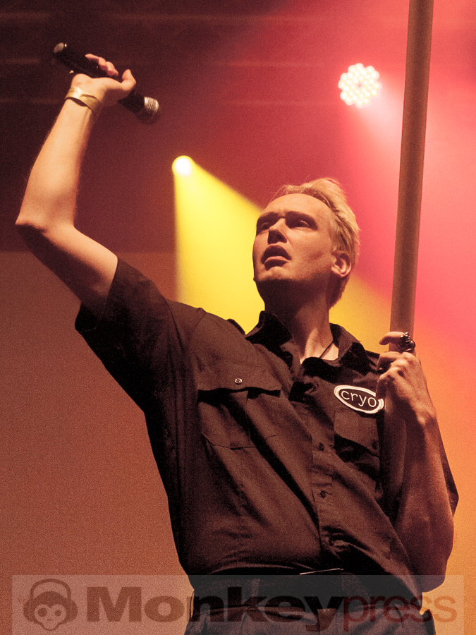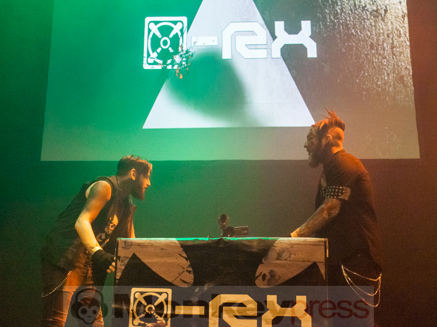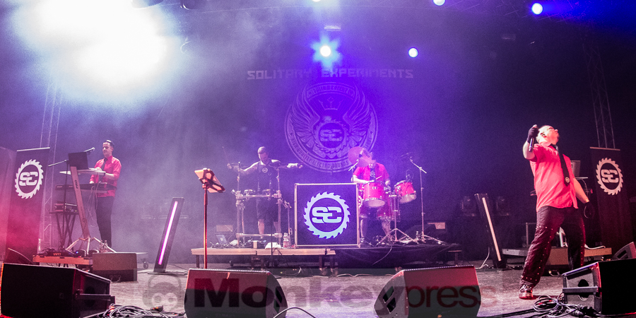 Der Frühabend mit Solitary Experiments und Solar Fake auf Bühne 1, sowie Tyske Ludder und X-RX auf Bühne 2 verlief ohne große Besonderheiten, den beständigen Fangemeinden hat’s gefallen – kein Wunder, sind doch alle vier Acts mittlerweile konstanter Bestandteil der einschlägigen Festivals. Wie schon auf der kurz vorher absolvierten Tour ließ Solar Fake-Frontmann Sven Friedrich mit einer speziellen Coverversion aufhorchen. Diesmal gab es Somebody Told Me von The Killers auf die Ohren.