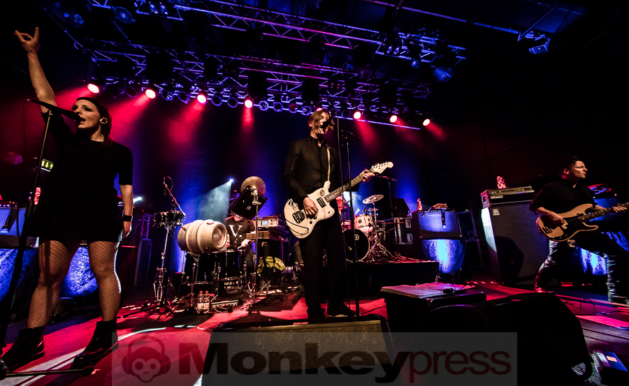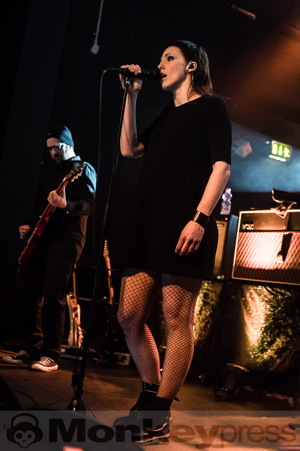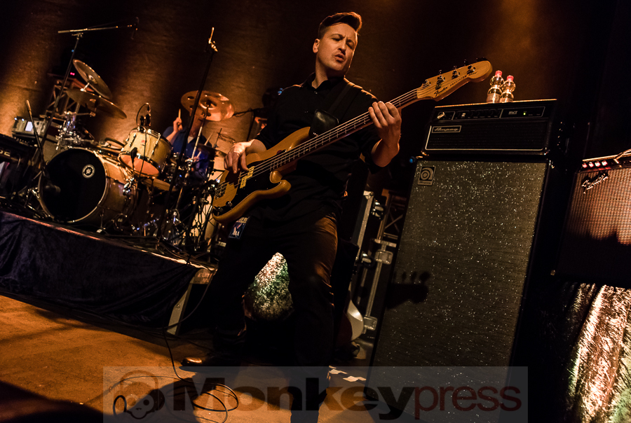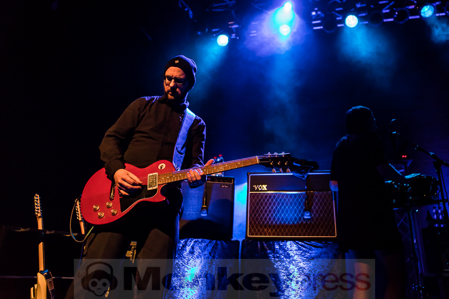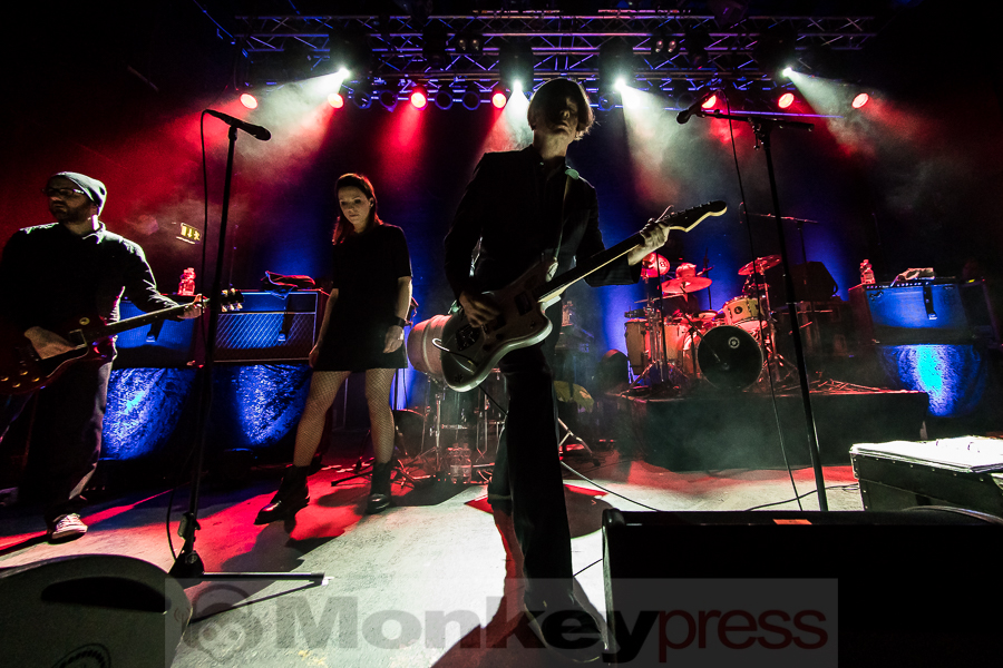 Auch in der Kulturfabrik Krefeld erfreulicher Weise im Vorprogramm dabei: Box And The Twins, die mit Everywhere I Go Is Silence im letzten Jahr ihr langersehntes Debütalbum [Review] veröffentlicht haben und dieses aktuell live vorstellen. Beim Eröffnungssong This Place Called Nowhere merkt man den drei Kölnern die Anspannung vor solch einem großen Publikum zu spielen noch an, doch das gibt sich bereits beim großartigen Perfume Well, das eine schöne, düstere Stimmung in der Kufa erzeugt. Sängerin Box von Dü gibt viel Herzblut in ihren Gesang, während die beiden Mitstreiter Mike und Marc in den von ihnen erzeugten Klangspähren schwelgen. Das gibt ihnen spürbar Sicherheit und man merkt, wie sehr sie den Auftritt mittlerweile genießen und auch die Zuschauer finden sichtbar Gefallen an den ästhetischen Klängen. Time is flying when you are having fun und so geht die Show mit insgesamt 6 Songs und gut 30 Minuten Spielzeit leider viel zu schnell vorüber, viele Zuschauer werden aber sicher wiederkommen, wenn Box And The Twins wieder einmal in der Nähe sind. Ein starker Auftritt, über den sich nicht nur die drei Protagonisten am Ende sehr freuen… Weiter so!