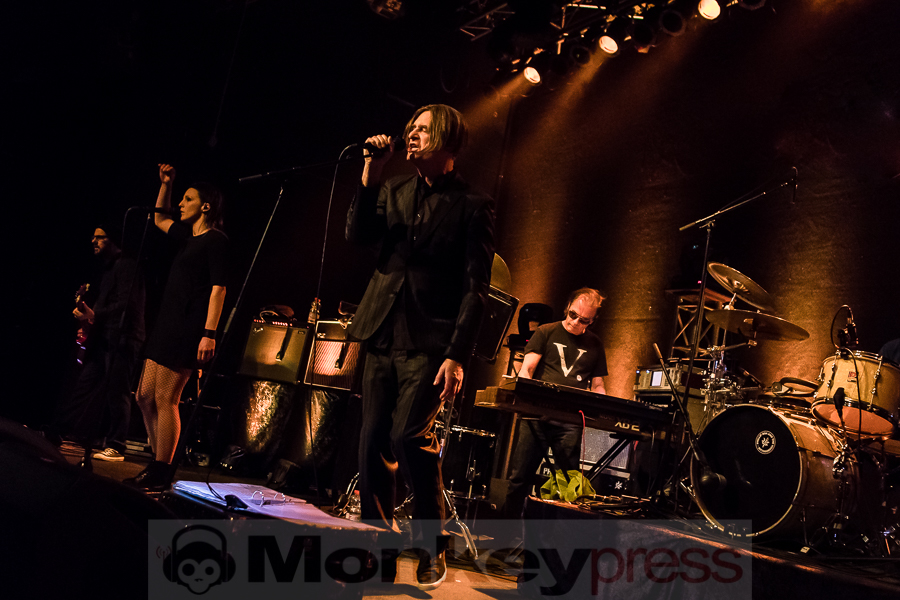 Die nachfolgende Pause vergeht angenehm zügig, zumal die Pausenmusik einige Highlights bereithält. Und pünktlich um 21:00 Uhr ist es dann soweit und Phillip Boa And The Voodooclub betreten mit Kill The Future die gut befüllte Bühne und lassen mit Fine Art In Silver gleich einen echten Kracher folgen. Schon jetzt hat der Voodooclub um Phillip und Sängerin Thari Kaan, die seit letztem Jahr dabei ist, die Kulturfabrik voll im Griff. Kein Wunder geht es doch hier Schlag auf Schlag denn der nächste Knaller folgt sogleich: Annie Flies The Love Bomber. Die Zuschauer werden mitgenommen auf eine Reise durch die verschiedensten Epochen der Bandhistorie und bekommen so noch einmal deutlich zu spüren, wie vielfältig die Kunst Phillip Boas war und ist. Und immer wieder gibt es Boa-Hits wie Love On Sale –mit Drumsolo auf Drumkit und Fass- zu hören, aber auch neuere Songs wie Kill Your Vacation vom 2014er Werk Bleach House sorgen für Partystimmung.