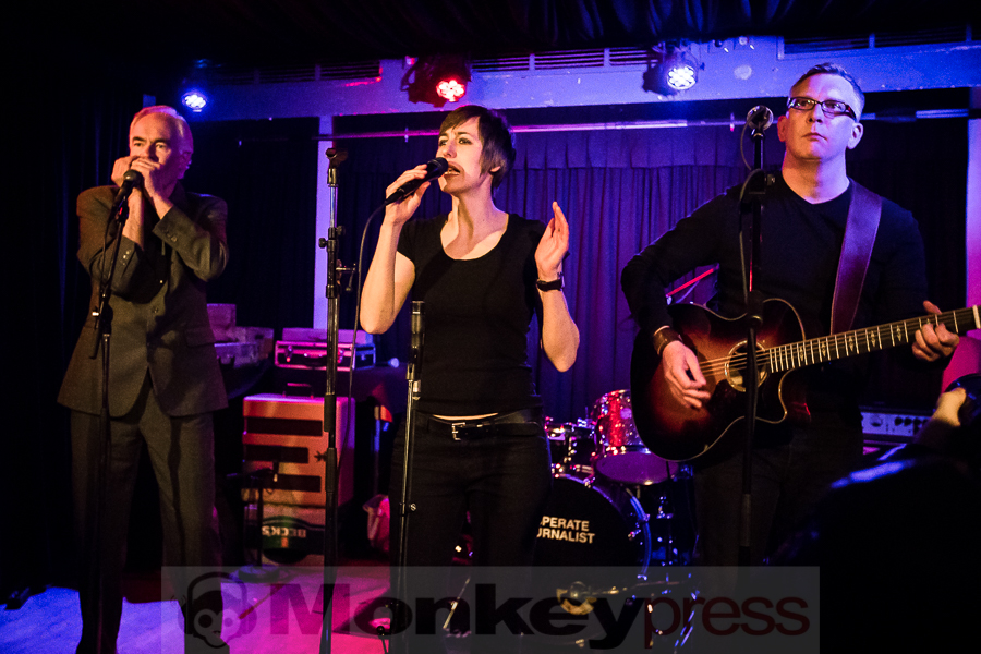 Im Rahmen der Veranstaltungsreihe Temptation Club fanden sich am Mittwoch die Postpunk-Briten von Desperate Journalist nebst Support Precious Few ein. Während das Bonner Acoustic-Indie Gespann mit Mundharmonika, Melodika und Akustikgitarre mit gemütlicher Lagerfeueratmosphäre den Abend eröffenete, entpuppten sich Desperate Journalist hingegen als kleines Inferno: Nicht nur optisch inspiriert durch The Cure, The Smiths und einem leichten Hauch Cranberries hatte man das Gefühl, mit Sängerin Jo Bevan die gemeinsame Tochter von Morrissey und Dolores O’Riordan singen zu hören, während Caroline Helbert stoisch an den Drums den Takt vorgab. Dazu addierten sich Simon Drowners knarziger Fender Jaguar Bass und die wabernde, effektschwangere Rickenbacker Rob Hardys zu einem modernen 80s-Sound. Modern deshalb, weil die vier selbstverständlich keine Zeitreisenden aus den Achtzigern sind, sondern sich auch gegen gegenwärtige Einflüsse wie beispielsweise durch die Savages nicht erwehren können. Seit der Gründung im Jahr 2012 erfolgte im November 2014 die Veröffentlichung des selbstbetitelten Debüts, welches bereits einen kleinen Hype loszutreten vermochte. Es folgten zahlreiche Singles und EPs, ehe im März diesen Jahres dann der zweite Longplayer Grow Up das Licht der Welt erblickte, der dem Erstlingswerk in nichts nachsteht.