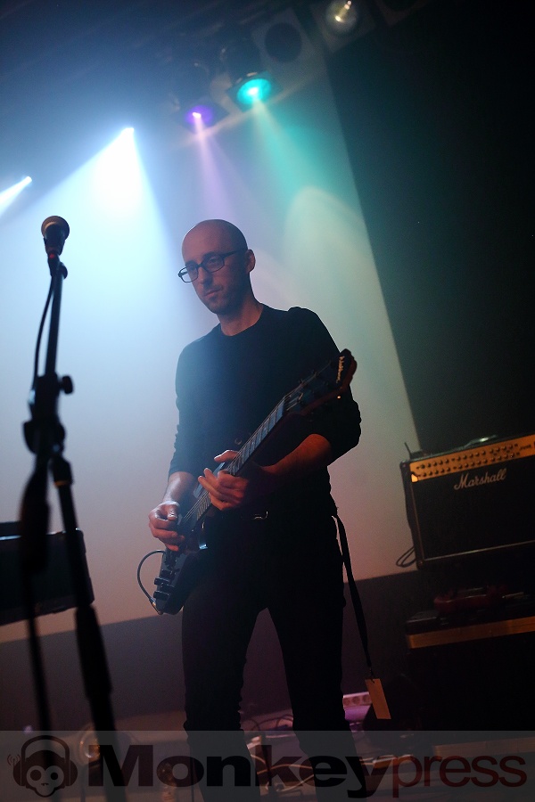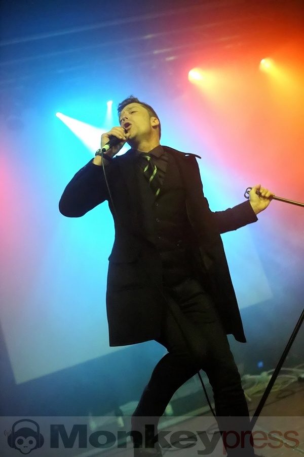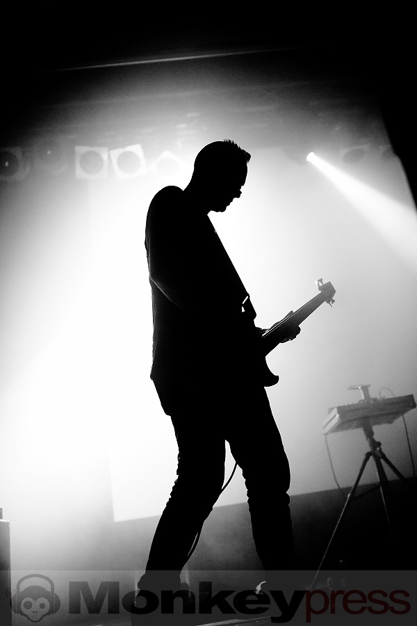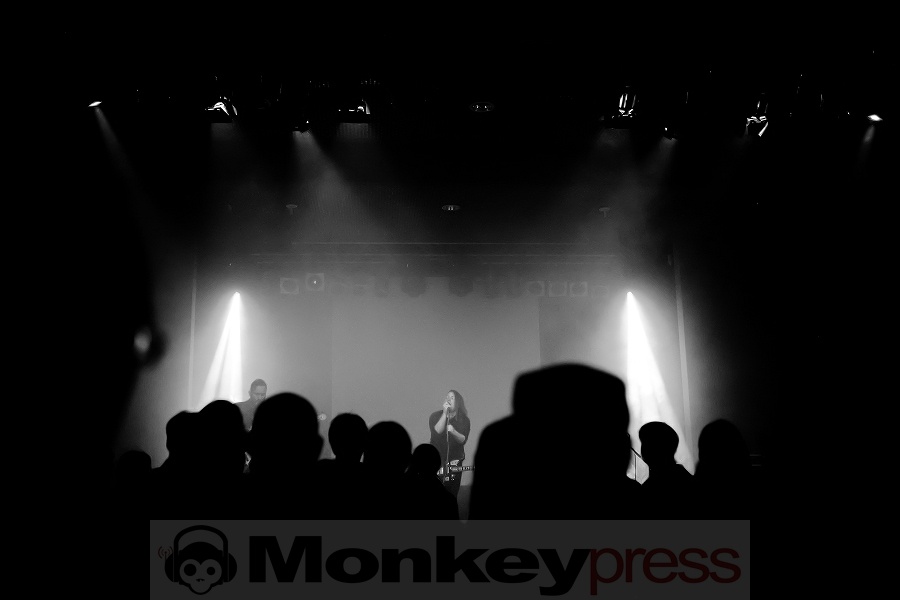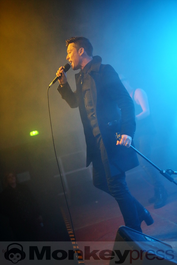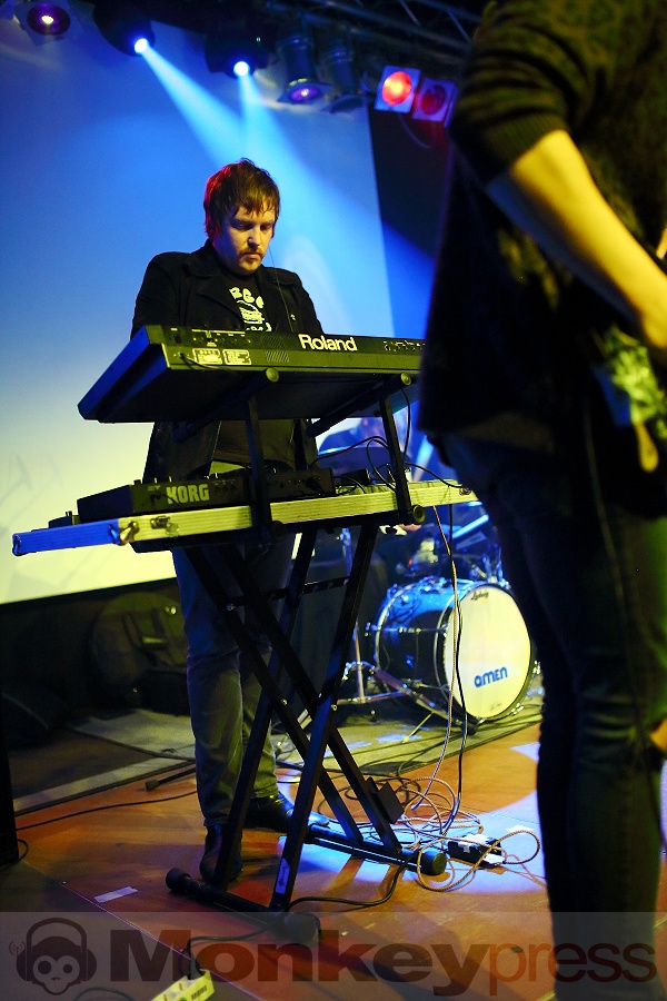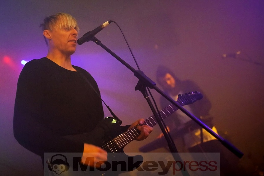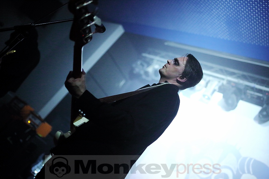 Gleich mit der ersten Band, welche mit einer leichten Verzögerung im Ablaufplan die Bühne betrat, wurden dann die Fans mit wunderbarer Musik belohnt. Denn es war niemand geringeres als die aktuellen Shooting-Stars der dunklen Szene, die sich innerhalb einer dreiviertel Stunde präsentieren konnten. Die Rede ist von dem rheinischen Quintett Holygram, welches mit seiner selbstbetitelten E.P. alle Augen und Ohren auf sich zog. So schnell sie nämlich ihre in Eigenproduktion geschaffenen Musikkassetten veröffentlicht hatten, so schnell hatten sie auch ein Label für sich gefunden, das die E.P. nun als Silberling anbietet. Ihr Set bestand somit großteils aus diesen Tracks wie dem flotten Still There oder dem träumerischen Acceleration. Und wenn solche Songs wie Hideaways es schaffen, ein halbes Jahrhundert alte Fleischbeschichtung in Gänsehaut zu verwandeln, dann kann man das nur als besonders und magisch bezeichnen. Selbst den kurzfristigen Ausfall der Gitarre konnte Holygram durch ein interessantes Soundgefüge überbrücken. Eine überzeugende Live-Performance, welche Appetit auf neues Material macht. Und der mit dem Arbeitstitel versehene Song Borders ist mehr als sättigend!