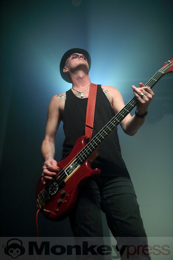 Aus Polen war das Trio der Band Under The Skin angereist und hatte als zweite Gruppe die Bühne für sich. Mit einem tollen Gothic-Rock zeigten die Jungs aus unserem östlichen Nachbarland, dass auch dort gepflegter, düsterer Rock produziert werden kann. Ganz nach den Vorbildern des UK-Goths boten Under The Skin spannende Tracks wie Undone oder ihre brandneue Single Burn, die überzeugten. Leider machte sich bei diesem Auftritt wieder mal bemerkbar, dass ein leibhaftiger Drummer echt Gold wert ist, denn das Rhythmusinstrument aus der Konserve wirkt oftmals dumpf und mechanisch. Ansonsten jedoch waren die 45 Minuten des Trios in den anhaltenden Nebelschwaden sehr unterhaltsam und Freunde des klassischen Gothic-Rock sollten die Band aus Polen weiter in den Augen behalten!