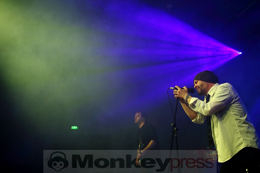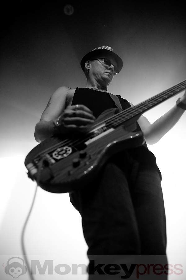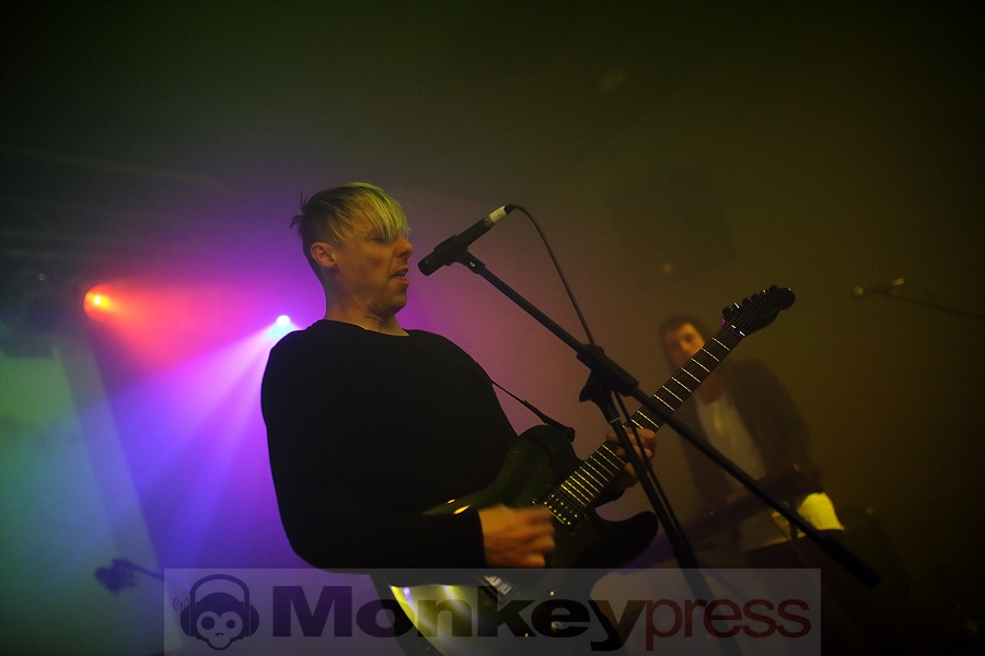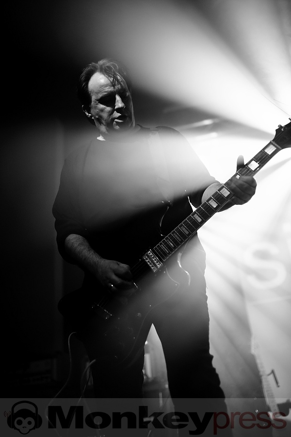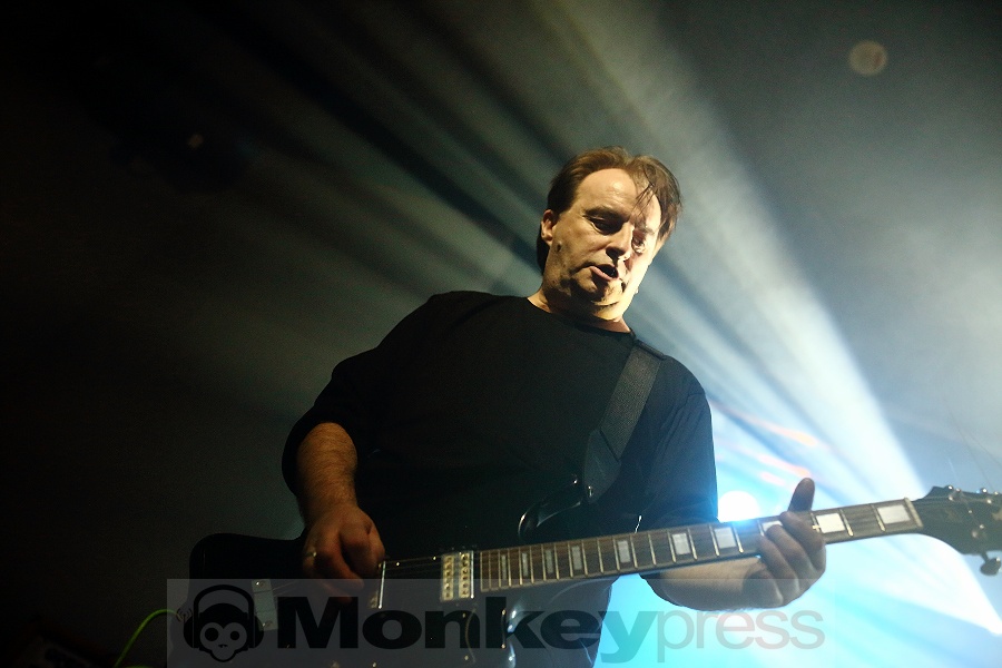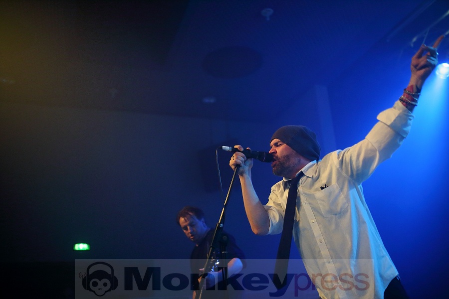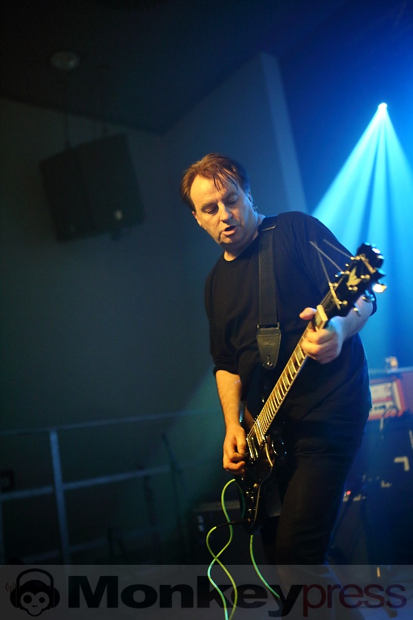 Den letzten Auftritt des ersten Abends verblieb den britischen Children On Stun. Das Dreigespann war eigentlich schon im letzten Jahr für das Gotham Sounds Festival angedacht, aber musste leider kurzfristig absagen. So war von dem UK-Gothic-Rock-Kult ein bisschen Wiedergutmachung angesagt. Und ich glaube sagen zu können, dass dies wirklich gelang. Sehr gut gelaunt legten sich Sänger Neil Ash und Kollegen richtig ins Zeug und zogen das Publikum durch kurze Reisen von der Bühne in die Menschenmenge schnell mit sich. Das war allerdings gar nicht nötig, denn die meisten waren gekommen, um Tracks wie Tortured By A Sense Of Humour oder Downfall endlich nochmal – oder gar erstmalig – live zu erleben, denn der letzte Besuch der Briten auf deutschem Boden lag nun schon geschlagene zwanzig Jahre zurück! Es hieß innerhalb der gut 105 Minuten auch brandneuen Tracks zu lauschen und diese flotten Lieder Signs oder Echoes brachten direkt das gewohnte Children On Stun-Feeling herüber. Ein überzeugender Auftritt der drei Veteranen, die es sich nicht nehmen ließen, mit ihren absoluten Klassikern Sidelined und Celebration eine traumhaft schöne Zugabe hinzulegen und das Publikum für den ersten Abend zufrieden und glücklich zu hinterlassen.