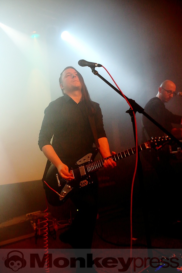 Auch die Band Traitrs trat mit zwei Künstlern als minimalistische Fraktion auf. Was diese beiden Musiker jedoch aus dem Synthesizer, der Konserve und der Gitarre herausholten, zollt doch schon einigen Respekt, bedenkt man außerdem die weite Anreise der Kanadier. In den gut 40 Minuten gaben die beiden Nordamerikaner ihre sehr magische Mischung aus Post-Punk und Cold Wave zum Besten. Die Setlist bestand Großteils aus ihrer Veröffentlichung Rites And Rituals, jedoch hatten die sympathischen Jungs mit Hand Of Holy Fingers und The Cutting sogar zwei brandneue Tracks ihrer aktuellen 7“ Single im Handgepäck. Songs wie das wunderbare Saviour oder Witch Trails füllten unter anderem die Spielzeit. Die Begeisterung und Spielfreude, welche Traitrs auf die Bühne brachte, wurde sehr wohlwollend vom Publikum aufgenommen und den lautstarken Beifall nutzen die Jungs zu einer noch lebendigeren Performance, auch wenn sie sich dann eingestehen mussten: “F**k – it’s so hot!“ Dass bei der aufopfernden Darbietung dann auch noch der Synthesizer von seinem Ständer schoss, war vielleicht nicht geplant und ist wohl etwas unglücklich bei geborgtem Equipment zu nennen, aber: Ende gut – alles gut! Traitrs bewiesen, dass sie ein Teil der Zukunft in Sachen dunkler Musik sind und ich glaube, dass sie nicht wenige Zuschauer als neue Fans hinzugewinnen konnten.