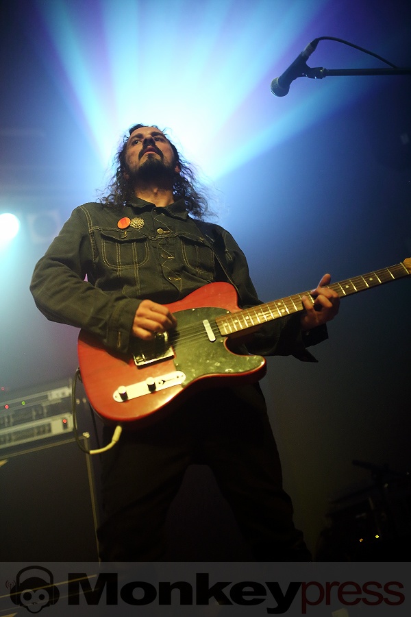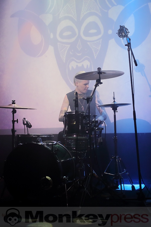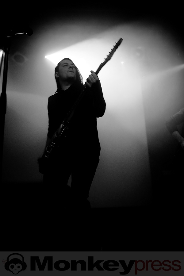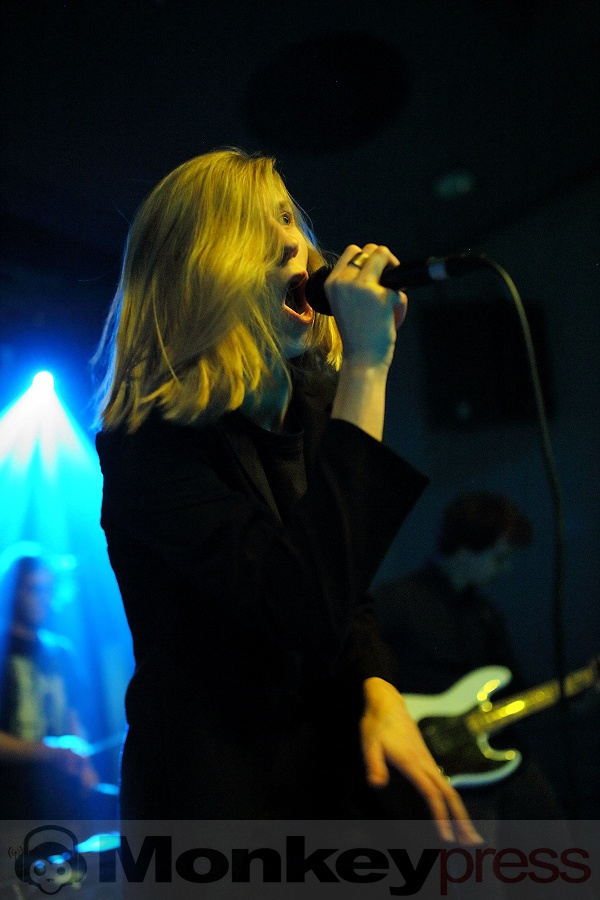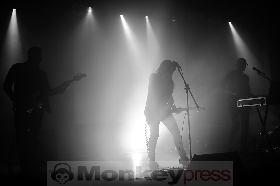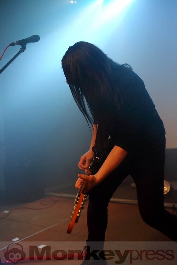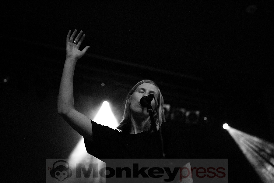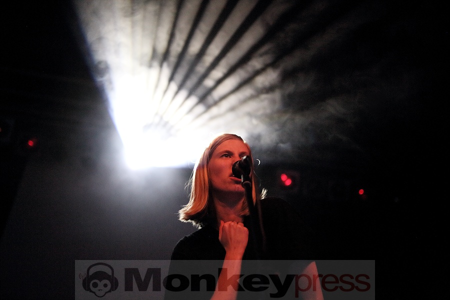 In meinem Vorbericht hatte ich noch gefragt, wie die einzige Dame am Mikrofon sich auf dem Gotham Sounds Festival zwischen all den ausdrucksstarken Sängern behaupten würde. Nun, die Band Whispering Sons hat alle weggeblasen! Bezeichnet man den Auftritt der belgischen Band um Sängerin Fenne Kuppens als schlicht beeindruckend, ist dies wirklich stark untertrieben. Der Sound der gesamten Band – von dem klaren Gitarrenspiel bis hin zu den E-Drums – war bestens ausgesteuert. Dazu die mehr als außergewöhnliche, dunkle wie charismatische Stimme von Fenne Kuppens – das ließ nach den ersten Tönen ziemlich schnell so manchen Kinnladen im Publikum herunterklappen. Mit dem voluminösen Opener Shadow über dem frischen und vorantreibenden 7“-Track Performance bis hin zum sich steigernden und abschließenden Insights – hier konnte man einen perfekten Auftritt einer engagierten jungen Band erleben. Alle Instrumentalisten zeigten Spielfreude pur und Fenne bringt die Lieder dermaßen ausdruckstark wie lebendig herüber, dass man einfach nur staunen kann. Tatsächlich alles sehr schwer in Worte zu fassen – einfach fesselnder moderner Post-Punk. Wer die Belgier bei ihrem Liveauftritt in Hilden verpasst hat: Das müsst ihr unbedingt nachholen!