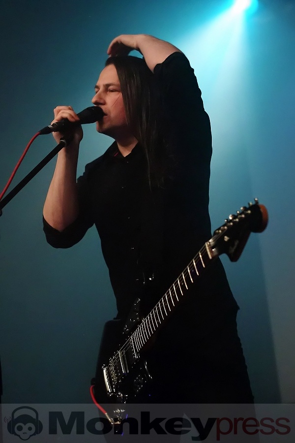 Recht passend zum Zeitplan stand somit das Duo der Band Siberia auf der Bühne. Für mich persönlich eine kleine Lehrstunde, hatte ich doch bei den Recherchen zum Vorbericht nicht den geringsten Anhaltspunkt darüber gefunden, dass sich hinter der britischen Band niemand anderes als Gitarrist Dave Drum von den seligen Vendammian verbarg. Und Sänger Matt Wyatt hatte 1995 ebenfalls ein kurzes Gastspiel bei Vendammian gegeben. So fügte sich aber das Puzzle zusammen, das auf der Social-Media-Webseite Facebook ein gewisser Vendammian Dave nicht gerade selten diese Band und ihren aktuellen Output mehrfach überschwänglich angepriesen hatte. Erwähntes Release ist das Debüt-Album mit dem Titel Turning Back Tides, das nicht nur die Plattform der Setlist darstellte, sondern komplett herunter gespielt wurde. Lieder wie A Moment To Breathe oder Exit entpuppten sich als wunderbare Gothic-Rock Tracks, welche direkt Laune auf mehr dieser dunklen Musikdroge verbreiteten. Leider musste man bescheinigen, dass die Rhythmusgeräte wie auch Synthies aus der Dose ebenfalls etwas dumpf wirkten. Das brillante Gitarrenspiel von Dave deckte dies jedoch sehr befriedigend ab. Dafür waren allerdings Abstriche bei Sänger Matt zu machen, der meiner Meinung nach zwar gesanglich ganz gut agierte, jedoch ansonsten irgendwie neben sich stehen zu schien. Somit war es auch keine große Überraschung, dass der Songtext immer wieder mal schnell abgelesen werden musste. Nichts desto trotz ein musikalisch feiner Start in den zweiten Abend.