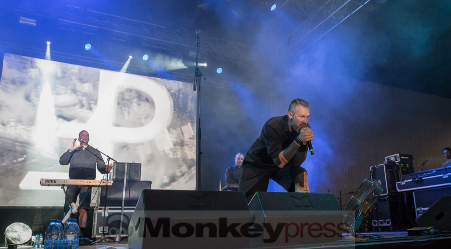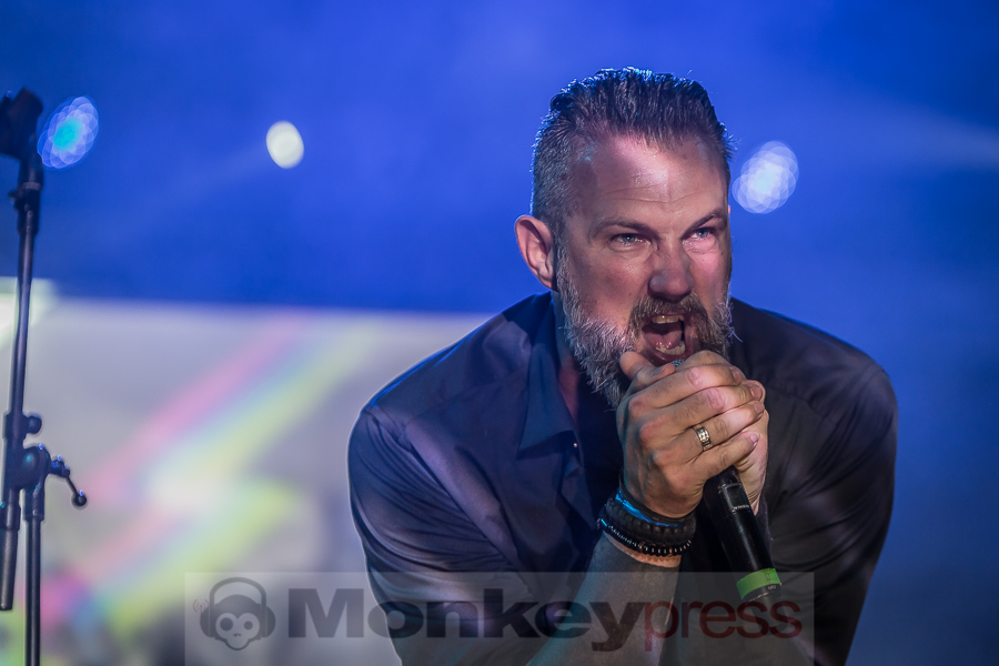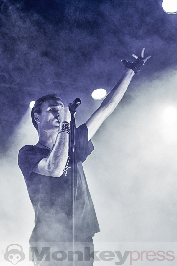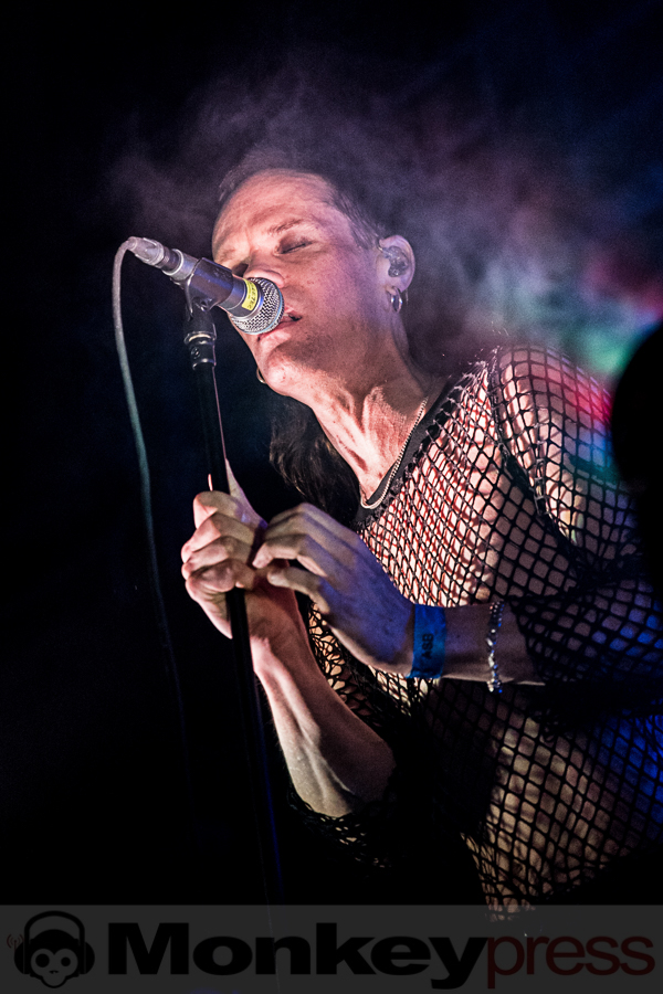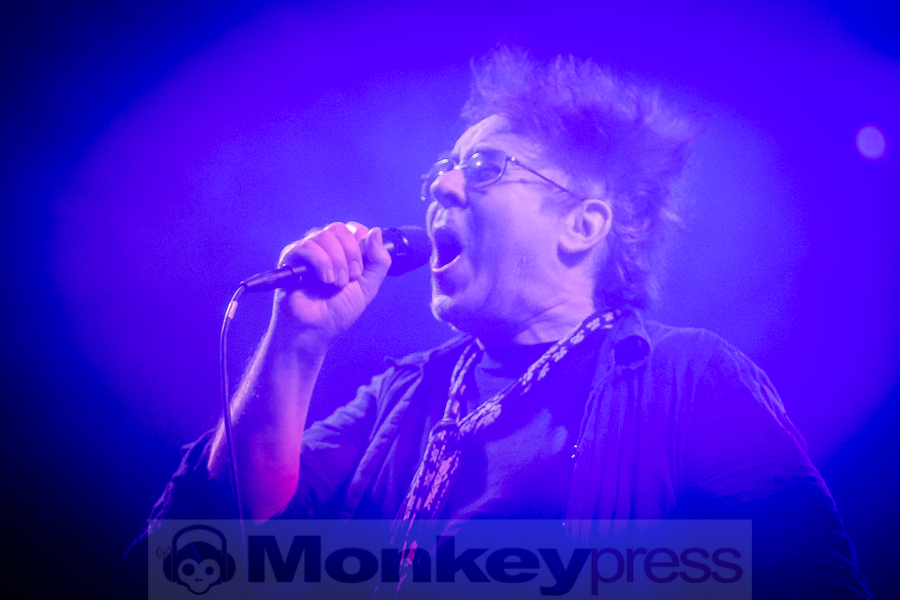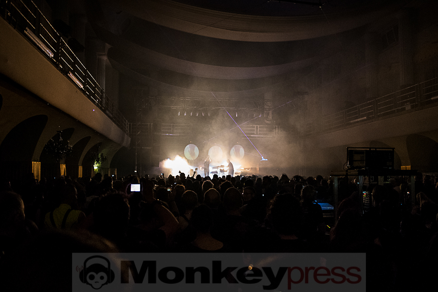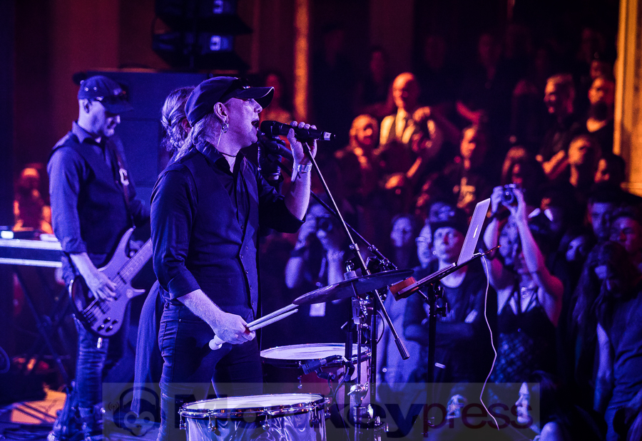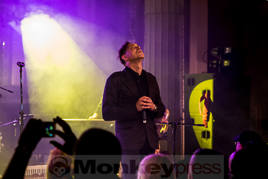 Mit leichter Verspätung betreten die Schweden um 22:40 Uhr die Bühne der grandiosen Location im alt-ehrwürdigen Stadtbad zu Leipzig. Diese Location ist mehr als nur gut gefüllt. Fast könnte man meinen, wegen Überfüllung geschlossen, aber immer mehr Fans der Schweden strömen in die Halle. Die spezielle Atmosphäre hier im Stadtbad ist einfach nur großartig. Auf der Bühne sind mehrere Keyboards und Synthesizer aufgebaut und versprechen deshalb ein elektronisches Highlight der besonderen Art. Kite heißt das Zauberwort der elektronischen Klänge – eine Synthie-Band aus Schweden, die schon eine beachtliche internationale Fanbase aufbauen konnten. Diese elektronischen Klänge wollen uns die Jungs aus dem Norden Europas heute Abend mal so richtig auf die Ohren drücken. Im Hintergrund der Bühne hängen drei Kreise auf denen Videosequenzen gezeigt werden. Laserlicht und eine aufwendige Lichtshow inklusive Stroboskop tauchen die Bühne und die Location in buntes Licht. Besonders erwähnenswert ist die doch ungewöhnlich hohe Stimme des charismatischen Sängers Nicklas Stenemo. Diese und die analogen melancholischen Synthie-Sounds ziehen das Publikum unmittelbar mit den ersten Klängen in ihren Bann. Das Publikum ist ziemlich bunt gemischt und unterschiedliche Sprachen sind zu vernehmen. Gleich zu Beginn und auch über die ganze Show wird der Bühnenbereich immer wieder in grelles Neonlicht getaucht. Frontmann Nicklas Stenemo und Keyboarder Christian Berg haben ein düsteres Wunderland aus dröhnenden Synthesizern und stampfenden Beats geschaffen, voll von majestätischen schon hymnenartigen Melodien. Die melancholischen Synthie-Sounds gepaart mit der eindringlichen und einzigartigen Stimme von Nicklas Stenemo setzen sich unweigerlich in den Gehörgängen fest und wirken hypnotisierend. Um mich herum wiegen sich alle Anwesenden wie von Zauberhand gesteuert im Takt und viele Fans singen textsicher mit. Nach jedem Song werden die Schweden von ihren Fans frenetisch mit Beifall belohnt. (CM)