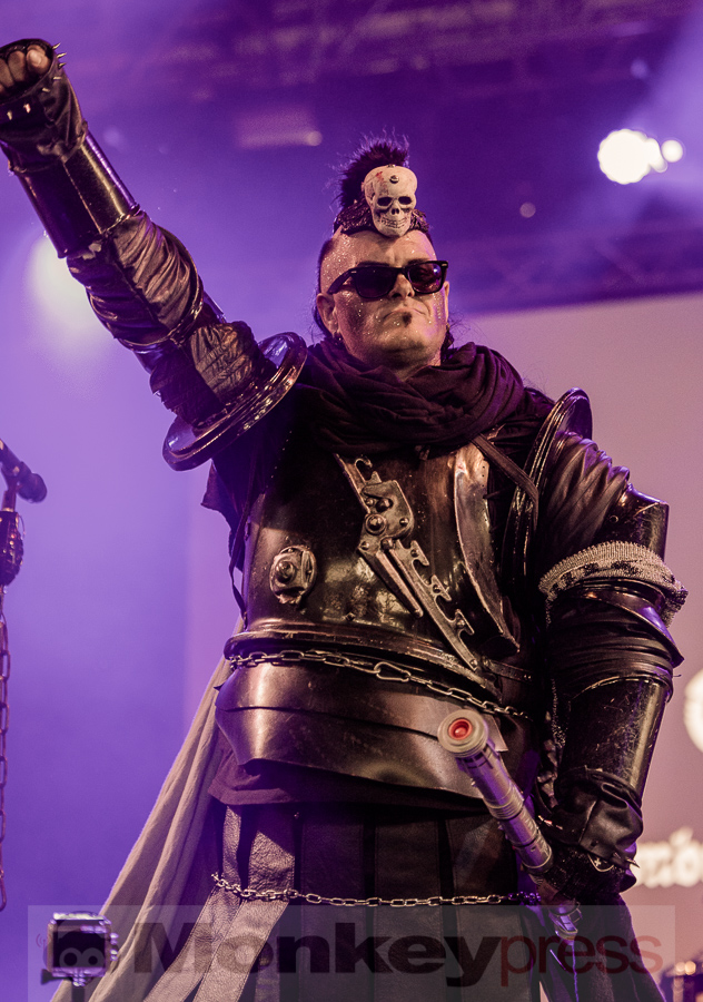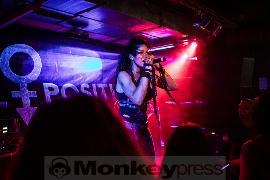 Einen schnellen Abstecher machen wir auch noch ins DarkFlower, wo Null Positiv auf dem inoffiziellen WGT-Programm stehen. Sie haben im letzten Jahr das Album Koma veröffentlicht und als wir den Club – wortwörtlich unter der Innenstadt von Leipzig – betreten, ist der Auftritt bereits in vollem Gange. Und auch wenn der relativ kleine Raum nur zu vielleicht 70 % gefüllt ist, brennt hier der Baum, denn mit harten „Neuem Deutschen Metal“-Klängen geht es vor allem eins … nach vorne! Frontfrau Elli gibt im Zentrum alles und die begeisterten Fans tanzen vor ihr und immer wieder werden die Arme begeistert gen Hallendecke gereckt. Für das Album hatte man sich Verstärkung in Gestalt von Oliver Pinelli (Unheilig, Wolfsheim) und John Seymour (U2, Architects) ins Boot geholt, beim WGT setzt man hingegen voll auf die entwickelte Energie und das Konzept geht auf. Die anwesenden Fans haben jedenfalls einen Heidenspaß und werden bei nächster Gelegenheit sicher wiederkommen. (MG)