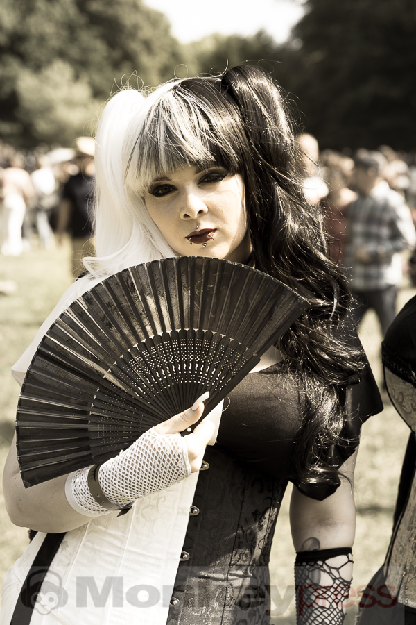 Das viktorianische Picknick ist einer der Höhepunkte des Wave-Gotik-Treffens in Leipzig und auch der Beginn in das nunmehr 26. Wave – Gotik – Treffen. Am Freitag zog es alle Wohlgesinnten ab 14 Uhr in den Clara-Zetkin-Park. In diesem Jahr kamen gefühlt noch mehr Besucher als die Jahre davor. Die eingezäunte Wiese füllte sich rasch mit Picknickern in den unterschiedlichsten Kostümen. Es gab keinen Dresscode, Hauptsache die Kostüme sind aufwendig und mit viel Liebe zum Detail gestaltet. Die Farbe schwarz ist zwar trotzdem noch dominant, aber wird auch gerne mit der einen oder anderen auffälligen Farbe kombiniert. Somit wirkt es auch irgendwie recht bunt. Die Schattenplätze unter den Bäumen waren recht schnell belegt, denn das Wetter meint es heute richtig gut. Ein strahlend blauer wolkenloser Himmel, dazu eine Sonne, die mit den Menschen auf der Wiese um die Wette strahlt und gute 25 Grad im Schatten, dazu eine leichte Prise Wind, dies lädt zum Flanieren und Picknicken unter Gleichgesinnten ein. Aber auch Leipziger oder Besucher der Messestadt nutzten das Viktorianische Picknick, um zu Staunen und dieses besondere Flair zu genießen. Die Kostüme standen ganz klar im Mittelpunkt. Diese wurden aufwendig in Szene gesetzt. Grüppchen saßen an aufwendig dekorierten Tischen mit Kerzenständern und genossen ihr Picknick. Andere standen in zwanglosen Gruppen zusammen und diskutierten oder sinnierten über die unterschiedlichsten Themen. Auffällig viele Familien mit ihren Kindern, ebenfalls gewandet, genossen einen grandiosen Nachmittag und einen wirklich guten Start ins WGT – bzw. Pfingstwochenende. (CM)