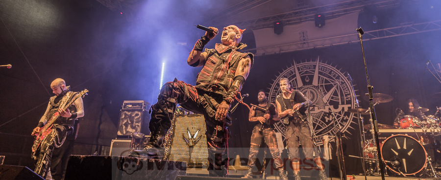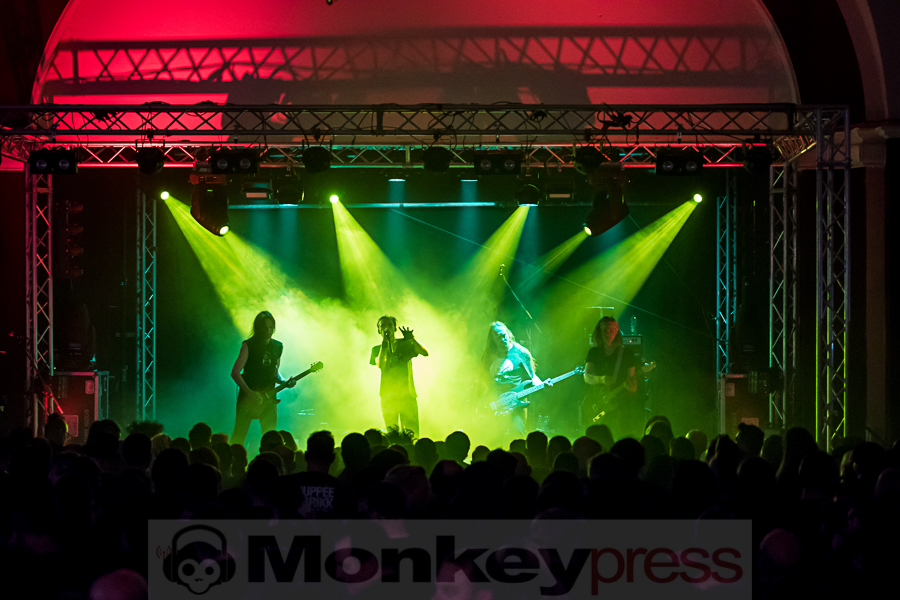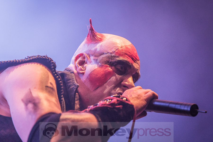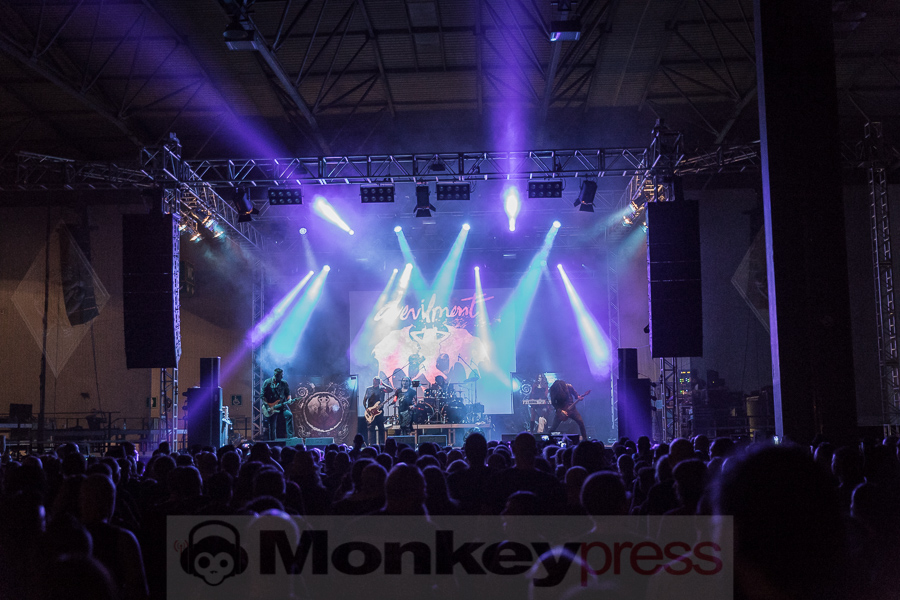 Dani Filth, seines Zeichens Kopf der Extreme-Metal Formation Cradle Of Filth und Stage-Vocalist von Devilment, ist schon von Weitem an seiner unverkennbaren, martialischen Stimme zu erkennen. Aber auch mit ihren infernalischen Trash-Metal-Riffs gelingt es den Jungs und Mädels aus Großbritannien die Bühne der Agra auf Anhieb zu rocken. Begeisterung macht sich unter den Fans breit – und das nicht nur in den ersten Reihen. In Puncto Performance stehen die übrigen Bandmitglieder ihrem Sänger dabei in nichts nach, so dass das perfekte Metal-Feeling von Anfang bis Schluss des Auftritts so manche Faust in die Höhe hebt. Das macht Spaß. Die Songauswahl setzt sich maßgeblich aus Stücken des aktuellen Albums Devilment II: The Mephisto Waltzes zusammen. Die Halle ist zwar nur zur Hälfte gefüllt, aber für die Anwesenden war Devilment als Abschluß des Freitages sicher eine gute Wahl. (DS)