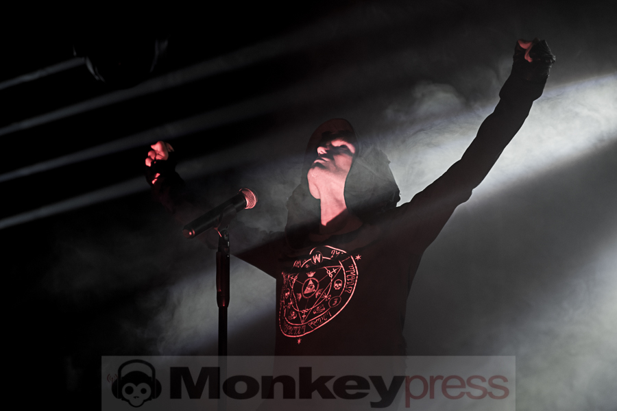 Das gut gefüllte Kellergewölbe der Moritzbastei wird von der Hamburger Band The Firm Inc. mit einem EBM-Donnerwetter erschüttert.Die 2014 gegründete Formation liefert eine Fulltime Show für die tanzwütigen Electro-Fans. Der Ex-Frontmann und Gründer von Funker Vogt Jens Kästel und seine beiden Bandkollegen Guido Henning & Jan Abraham (beide E-Craft) bringen schon beim zweiten Song Schluss mit lustig die vorderen Reihen zum Ausrasten und Pogen ohne Rücksicht auf Verluste. Wer´s gemütlich mag, ist hier eindeutig fehl am Platz! So lichten sich die vorderen Reihen auch recht schnell. Auch ein kleiner Tonausfall mittendrin kann die Stimmung direkt vor der Bühne nicht wirklich trüben. Einfach nochmal neu starten und weiter gehts. Doch die harten Kerle können auch ganz anders! Bei Frei, dem letzten Titel vom 2016 erschienenen Debütalbum Veritas, zeigt die Band das sie auch sanftere Töne anschlagen kann. Aber schon beim nächsten Song geht es wieder in die Vollen. BUTF bringt die Massen gleich wieder in Bewegung. Die Texte über Mut, Enttäuschung und Freundschaft sind mit harten Beats verpackt und gehen sofort in die Beine. Mit Geschichten ohne Wert werden die Missstände im Umgang der Menschen untereinander angeprangert. Überhaupt ziehen sich die Themen Stärke, Familien und Brüderlichkeit wie ein roter Faden durch die Texte. Die Luft im Gewölbe ist schon jetzt zum Schneiden dick und viel Platz für die zappelwilligen Füße ist auch nicht. The Firm Inc. verabschieden sich mit ihrer ersten veröffentlichten Single Abgebrannt vom Publikum, aber die Funken scheinen immer noch nicht ganz bis in die letzte Reihe übergesprungen zu sein. Die wenigen Rufe nach Zugabe werden nicht erhört und werden auch schnell leiser. Wahrscheinlich warten die meisten schon gespannt auf den folgenden und letzten Act des Abends: Angels & Agony. (AZ)