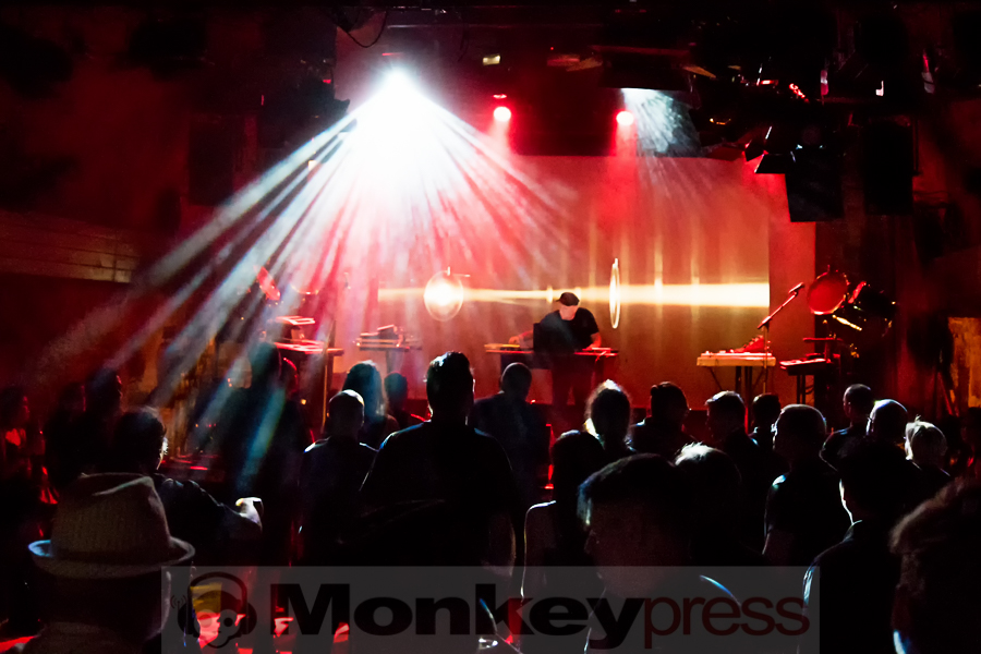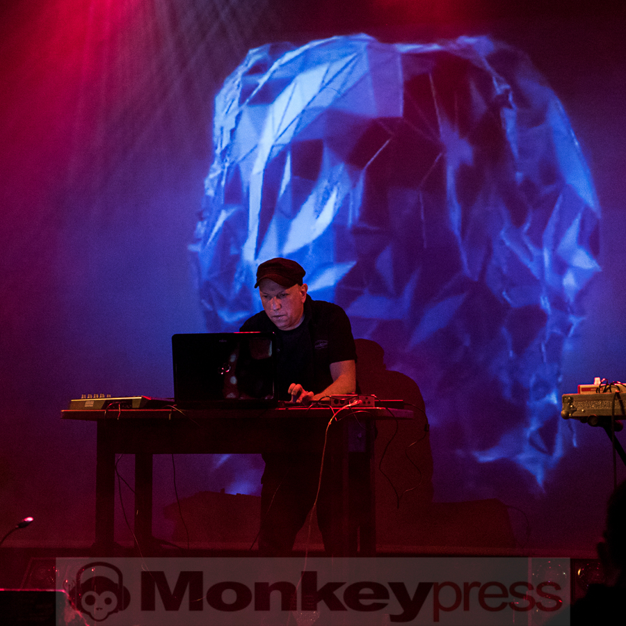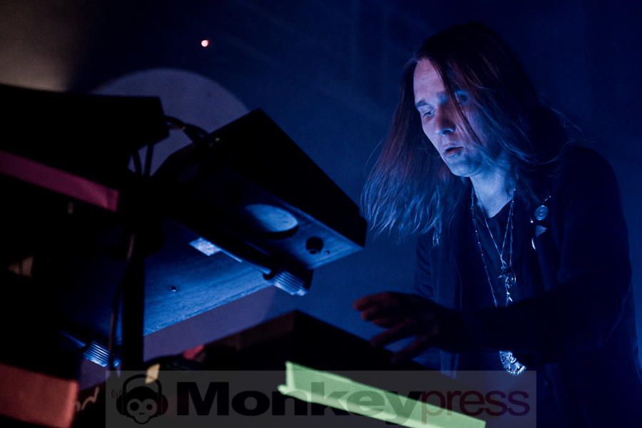 Zum Start ins WGT-Wochenende bin ich in der Moritzbastei ganz gespannt, was mich erwartet. Der Name der Band hat mich neugierig gemacht. Vorab erfahre ich, dass es sich bei Principia Audiomatica um ein Ein-Mann Projekt handelt und dass der Kopf dahinter Miljenko Rajakovic heißt. Dieser dürfte Fans noch vom kroatischen Dark-Ambient Projekt TeHÔM ein Begriff sein, das 1997 mit dem Tod von Mastermind Sinisa Ocurscak sein abruptes und tragisches Ende fand. Miljenko ließ das Projekt über 15 Jahre ruhen und tastet sich jetzt langsam wieder unter dem Namen Principia Audiomatica an die Musik heran. Auf der Bühne steht er mit seinem Laptop und haucht dem Raum elektronische Klänge und eine Lichtshow auf der Leinwand ein. Er spielt zum Teil Klassisches aus TeHÔM-Zeiten, aber auch in größerem Umfang neues eigenes Material, wie das kühle futuristische Ambient Stück Polar Circle. Etwa zur Hälfte ist das Tonnengewölbe der Bastei gefüllt, was aber nicht an der Musik liegen kann. Die ist durchaus hörenswert, auch wenn ich den Eindruck hatte, er fühlt sich auf der Bühne allein nicht recht wohl. Augenkontakt zum Publikum gab es leider nicht. (JB)