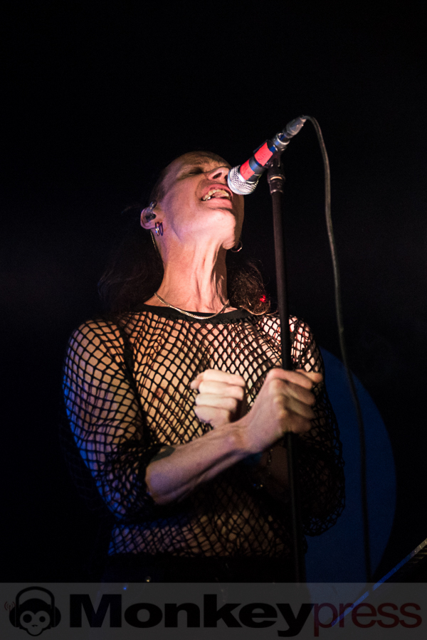 Nachdem Echo West das WGT-Programm im Stadtbad eröffnet haben, steht ein erstes, persönliches Highlight auf dem Programm. Die Kölner Box And The Twins gehören zu den spannendsten Neulingen der Szene und dem Trio gelingt es immer wieder, ihre Hörer mit atmosphärischen Stücken in ihren Klangkosmos zu entführen. Schon früh beglücken sie uns mit dem wundervollen Perfume Well. So versinken wir ganz tief in den verträumten Klängen von Bassist Mike und Gitarrist Marc, während Sängerin Box ihre Stimme fast wie ein zusätzliches Instrument einsetzt. Sie unterstreicht die Musik, indem sie mal ruhige Bewegungen einfließen lässt, mal in Form eines Ausdruckstanzes bekräftigt oder sich wie in Trance auf dem Boden wälzt. Die Zeit vergeht wie im Flug während wir der Performance gebannt folgen und uns zu Songs wie This Place Called Nowhere oder dem The Sound Cover Total Recall im Rhythmus wiegen. Wer die Show beim WGT verpasst hat, sollte sich ihren Auftritt beim Amphi Festival Ende Juli unbedingt vormerken! (MG)