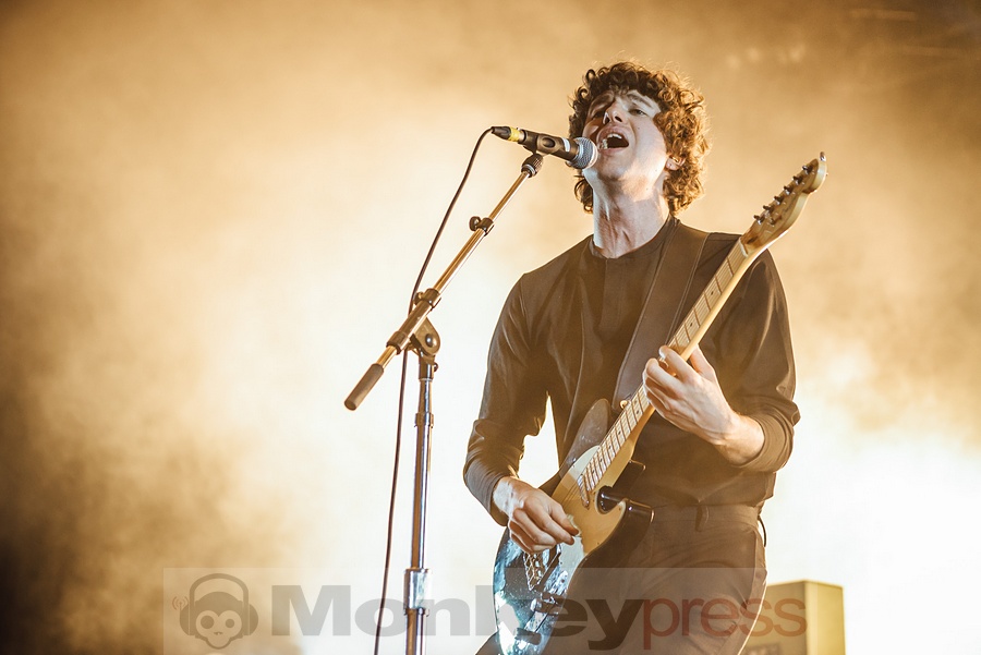 Luke Pritchard (Gesang, Gitarre), Hugh Harris (Gitarre), Peter Denton (Bass) und Alexis Nunez (Schlagzeug) eröffnen das Konzert mit guter Laune. Die Menge tobt, alle tanzen. Alle tanzen? Na okay, irgendwie wird das Publikum am Anfang nicht so richtig warm. Liegt es daran, dass The Kooks erst mal ausschließlich Songs aus ihrem zuletzt erschienen Album Listen (2014) spielen? Zumindest scheinen die meisten bei den „neueren Songs“ noch nicht ganz so textsicher zu sein – und die sind mittlerweile ja auch schon 3 Jahre alt. Das scheint Frontsänger Luke Pritchard auch mitzubekommen und fragt die Menge nach wirklich JEDEM Song „How are you feeling tonight?“. Glücklicherweise springt das Publikum darauf an und jubelt ihm jedes Mal zu. Nach einer halben Stunde geht es dann Schlag auf Schlag, The Kooks hauen einen Ohrwurm nach dem anderen raus: Seaside, Naive, Ohh La, She moves her own way, Shine on, Junk of the Heart (Happy), You don’t love me… und damit haben die Jungs aus Brighton ihr Publikum endgültig! Die Songs werden aus tiefstem Herzen mitgesungen wie Hymnen, alle liegen sich in den Armen (und selbst die schwitzige Hitze ist dabei ganz vergessen). Zum Schluss sind alle berieselt und glücklich. Denn auch das kann die Musik von The Kooks: Glücklich machen!