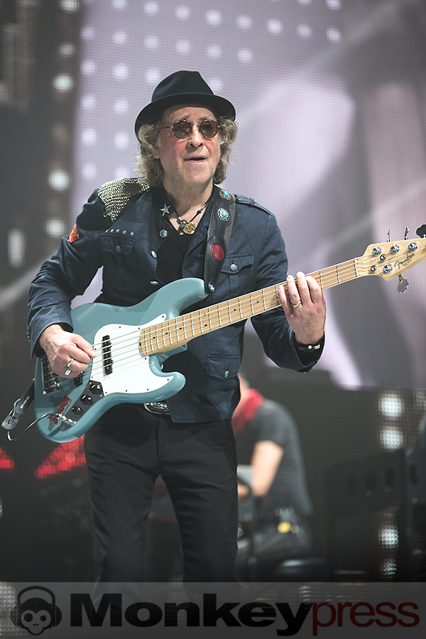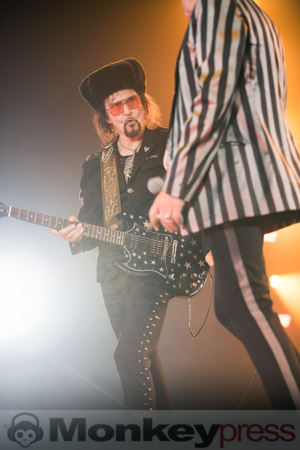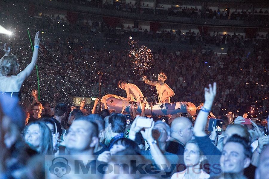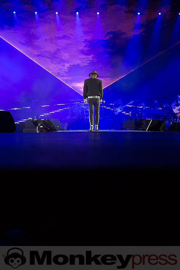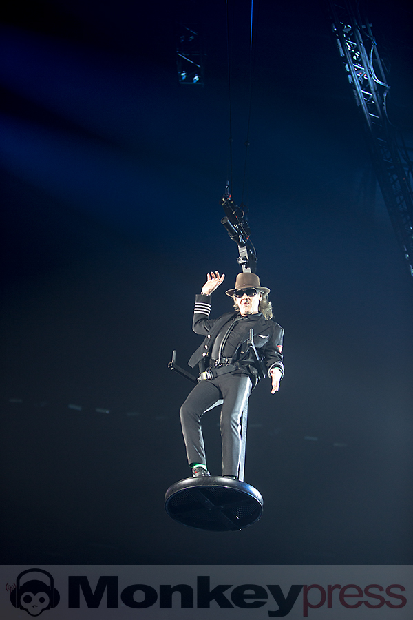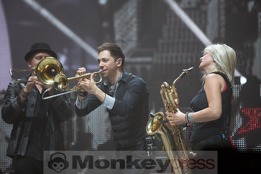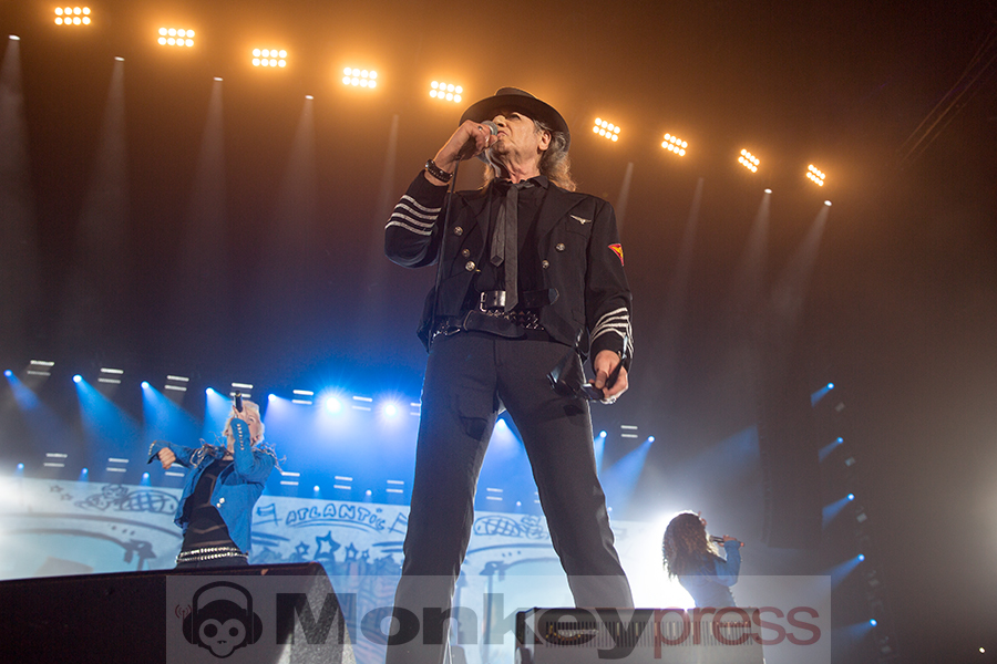Pünktlich zur Tatort-Zeit startet das Intro. Ein heftiges Gewitter auf der megagroßen Videoleinwand auf hoher See beginnt. Ein Schiff, nein ein U-Boot, kämpft sich durch die Wellen, der Sound tut ein Übriges dazu, einem das Gefühl zu vermitteln, mitten drin zu stecken. Blitze, Donner und dann: Die Wellen lichten sich und die Panikfamilie betritt die Bühne. Aber wo ist Udo? Er schwebt lässig von der linken Seite der Bühne aus zur Mitte des Bühnenstegs, wo er dann von zwei Tänzerinnen in Space-Anzügen in Empfang genommen wird. Die „Odyssee“ kann beginnen. Kapitän Udo beginnt ein letztes Mal seine Zeitreise durch 45 Jahre Musikgeschichte. Ein letztes Mal? Nein, nur ein letztes Mal auf dieser Tour. Denn dieser junggebliebene Altrocker (71 Jahre) wird vermutlich so lange es Spaß macht die Bühnen aufsuchen, um mit seiner Panikfamilie und seinen udopischen Fans zu feiern. Genau das ist es, was seinen Auftritt ausmacht. Es ist eine mega Party, eine freundschaftliche Gemeinde mit Udo als Panikpräsident von Udopia. Zu jedem seiner 22 Konzerte deutschlandweit kommen befreundete Musiker und Comedians die er eingeladen hat, um an dieser Feier teilzunehmen. Am heutigen Abend feiern Marteria, Otto Waalkes, Daniel Wirtz und das Kölner Urgestein Wolfgang Niedecken mit Udo und seinem Panikorchester. So unterstützt Daniel Wirtz den Song Bunte Republik Deutschland und Otto begleitet das Lied Heimweg wird’s Hell (Highway to Hell). Wolfgang gibt Udo ein wenig Nachhilfe in Kölner-Platt und Marteria rappt mit Sir Udo im Duett. Mit dieser Tour schreibt Sir Udo ein weiteres Kapitel Musikgeschichte. Der Titel seines Liedes Einer muss den Job ja machen, wird von Moderatoren, Politikern, Firmenchefs und sämtlichen Menschen als Statement eingesetzt.