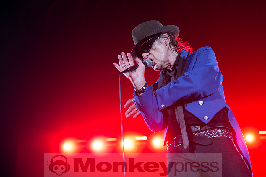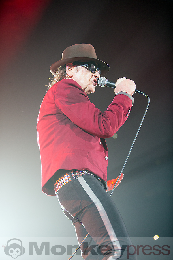 Heute ist das Tour-Abschluss-Konzert der Stärker als die Zeit-Tour von Udo Lindenberg. Nach panikartiger Parkplatzsuche um einen der heißbegehrten Parkplätze um die ausverkaufte Lanxess Arena, kommen wir dank einem schnellen und gut organisierten Einlass rechtzeitig vor Beginn an. Schnell noch ein Kölsch vernichtet und den Puls neutralisiert, bevor es dann losgehen kann. Wenige Augenblicke vor Gongschlag Acht dann eine Durchsage des Veranstalters: „Aufgrund des erhöhten Verkehrsaufkommens und der damit verbundenen Parkplatzsuche möchte Udo den noch nicht in der Halle eingetroffenen Besuchern die Möglichkeit geben, das ganze Konzert zu genießen und beginnt ca. 10 Minuten später.“ Nutzen wir die virtuelle Zeitverschiebung hier im Bericht, um die Event und Veranstaltungs-GmbH Think Big zu zitieren: Es ist das Dankeschön des deutschen Rock ‘n Roll-Paten an seine Millionen Fans – und eine Geste an mehr als 800.000 Besucher. Sie waren ihm auf Schalke oder nach Leipzig, ins Berliner Olympiastadion oder ins Hamburger Volksparkstadion gefolgt, um seine spektakulären Shows zu sehen. Die letzten Jahre waren nicht nur die musikalische Wiedergeburt des Udo Lindenberg, es waren auch Momente bisher nicht gekannter Stadien-Shows.
