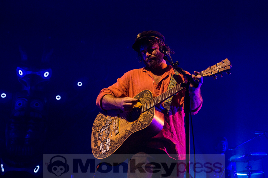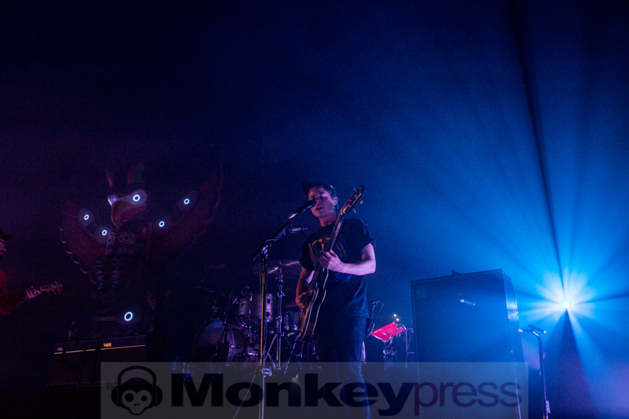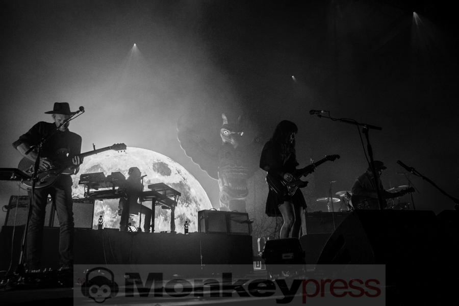 Beinahe pünktlich betreten Angus & Julia Stone mit ihrer Band später die Bühne und eröffnen ihren Auftritt mit Baudelaire /Make It Out Alive und finden damit den perfekten Einstieg in das Set. Das Publikum ist begeistert und lauscht den verträumten Melodien des australischen Geschwisterpaares. Passend dazu wird die Bühne immer wieder in wunderschönen Farben getaucht, während auf der Leinwand den ganzen Abend über schöne Stimmungsbilder wie ein Sternenhimmel, Wolken oder der Mond projiziert werden. Das letzte Mal waren die Australier vor knapp drei Jahren zu Besuch in Deutschland, seitdem hat sich einiges getan. Die beiden Musiker haben vor knapp einem Monat ihr viertes Studioalbum Snow veröffentlicht, was kein geringer als Starproduzent Rick Rubin produziert hat und so gibt es einige Songs von der neuen Platte zu hören, darunter Heart Beats Slow, Chateau, Cellar Door oder What Do You Think You Are. Einiges ist dieses Mal anders und man hat das Gefühl, dass das neue Album in einer kleineren Location besser funktionieren würde, als im großen Kölner Palladium. Dieses ist zwar sehr gut gefüllt, aber nicht jeder kann so leicht erreicht werden, was jedoch keinesfalls an Angus & Julia Stone liegt. Sie sind besser denn je und lassen mit ihren schönen Indie-Folk Songs und Hippie-Charme eine ganz besondere Atmosphäre in der Halle entstehen. Die dann bei dem seltenen For You von der zweiten Platte Down The River nochmal gesteigert wird. Ein ganz besonderer Moment entsteht, als Julia einen Song von Udo Lindenberg covert und dann Durch die Schweren Zeiten fast fehlerfrei auf Deutsch singt. Das Publikum applaudiert und das Geschwisterpaar ist sichtlich beeindruckt. Bei ihrem größten Hit Big Jet Plane bricht ebenfalls nochmal großer Jubel aus, bevor sich Angus & Julia Stone samt Band mit Snow kurz verabschieden und dann nochmal für drei Zugaben zurück auf die Bühne kehren. Mit Harvest Moon von Neil Young folgt ein weiteres Cover, ehe sich die sympathischen Australier endgültig verabschieden…