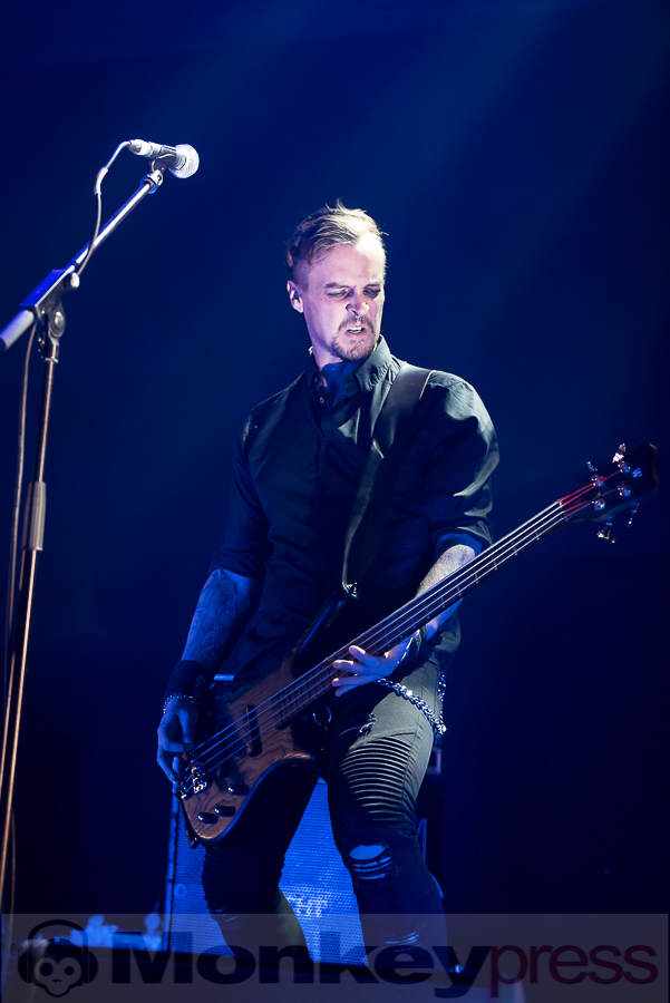 Nach einer halben Stunde umtriebiger Emsigkeit erhebt sich ein Podest auf der Bühne, das der Brücke eines Uboots nachempfunden ist. Eisbrecher erklimmen die Stage. Die Sturmfahrt kann beginnen! Alle steigen sofort mit ein, Sänger und Frontmann Alexx Wesselsky kommt ohne weitere Umschweife zum Wesentlichen und so werden der eskalierenden Menge erst einmal das Motto der Tournee und das nicht minder brachial-exaltierte Willkommen Im Nichts um die Ohren gekloppt. Die Show ist perfekt durchchoreographiert, die Fans sind textsicher: Publikum und Band bilden eine Einheit. Das setzt sich auch bei den folgenden Songs fort.