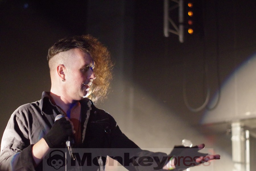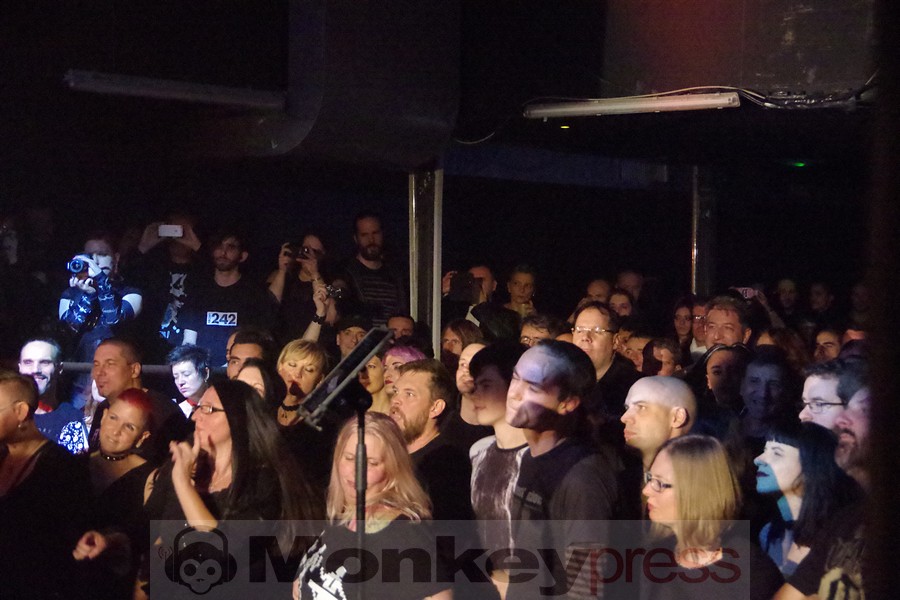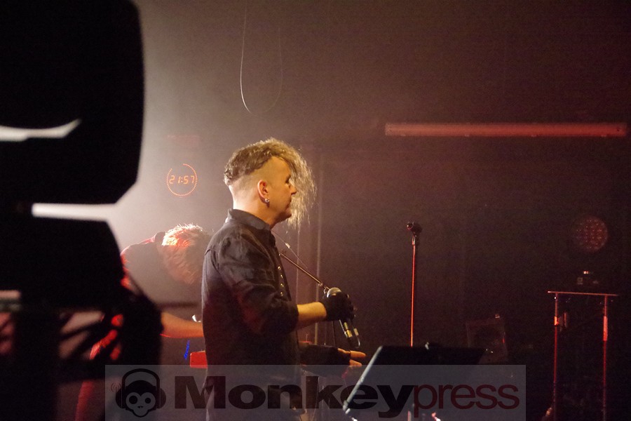 Ebenfalls ungewöhnlich: In Paris gab es keine Vorband, sodass Project Pitchfork direkt ohne Aufwärmprogramm die Bühne betraten. Dies sollte eigentlich 21:30 Uhr der Fall sein, aber aufgrund des großen Andrangs verschob sich der Beginn um etwa 20 Minuten. Gut so, denn so konnten auch alle den Anfang mitbekommen, bei dem man mit Conjure gleich mal einen Klassiker als Opener brachte, durch den das Eis nicht nur gebrochen wurde, sondern gleich wegschmolz. Das französische Publikum war entzückt. Wobei es nicht nur französisches Publikum war, sondern man auch schnell feststellte, dass zudem eine deutlich zweistellige Anzahl an Fans aus Deutschland zu dieser ausverkauften Show angereist war.