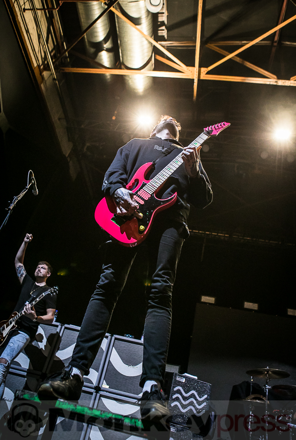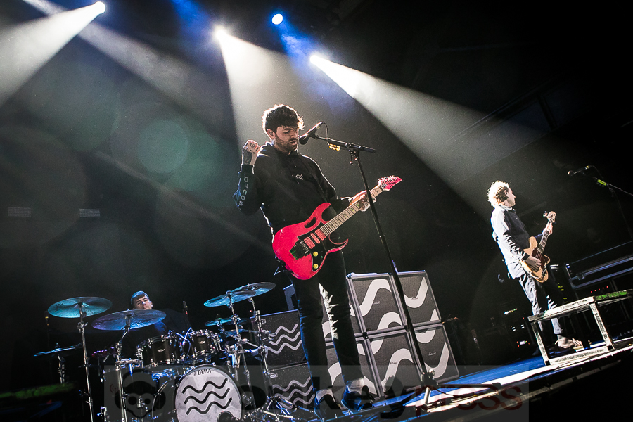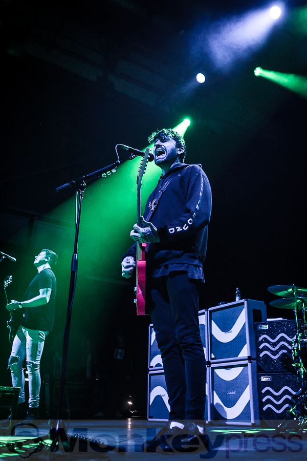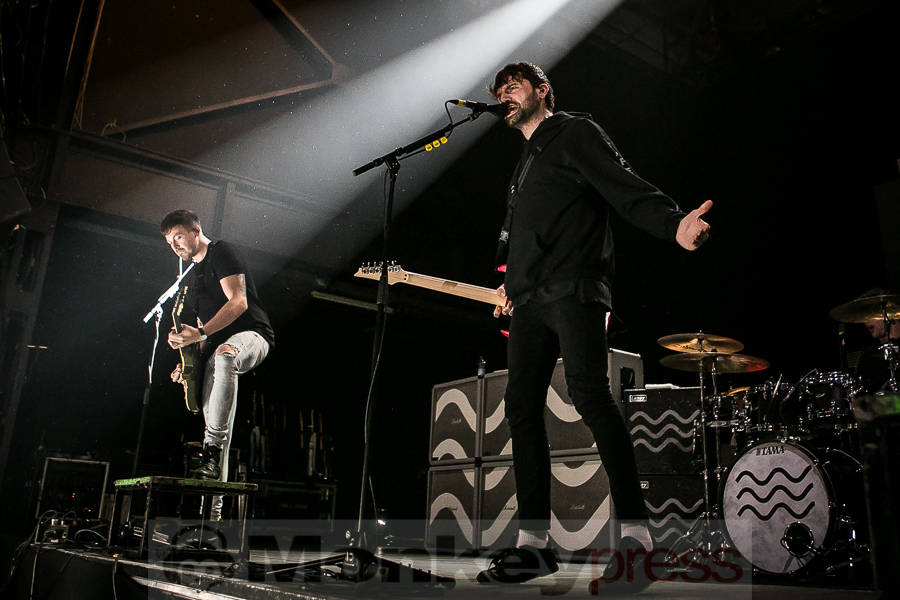 25 Minuten Umbau, danach war es Zeit für Lower Than Atlantis aus Watford, England. Im Promo-Schreiben vollmundig als „Post-Hardcore-Band“ angekündigt. Nun denn. Wir ziehen den Vergleich zu wahren Größen des Genres, die bei der Inspiration für Enter Shikaris Debütalbum Take To The Skies vor einem knappen Jahrzehnt eine große Rolle gespielt haben dürften. At The Drive-In, Refused, Quicksand… Und kommen zu den Entschluss, dass das ganz sicher kein Post-Hardcore ist, sondern stinknormaler Alternative Rock. Der ist blöderweise so stinknormal, dass er im linken Ohr rein und direkt im rechten Ohr wieder rauskommt. Alles irgendwie grundsolide, nur nicht geil. Fazit: Dieses Support-Paket war sicher kein Vergleich zu dem Totalabriss, den Modestep im vergangenen Jahr auf der anderen Straßenseite abgeliefert haben.