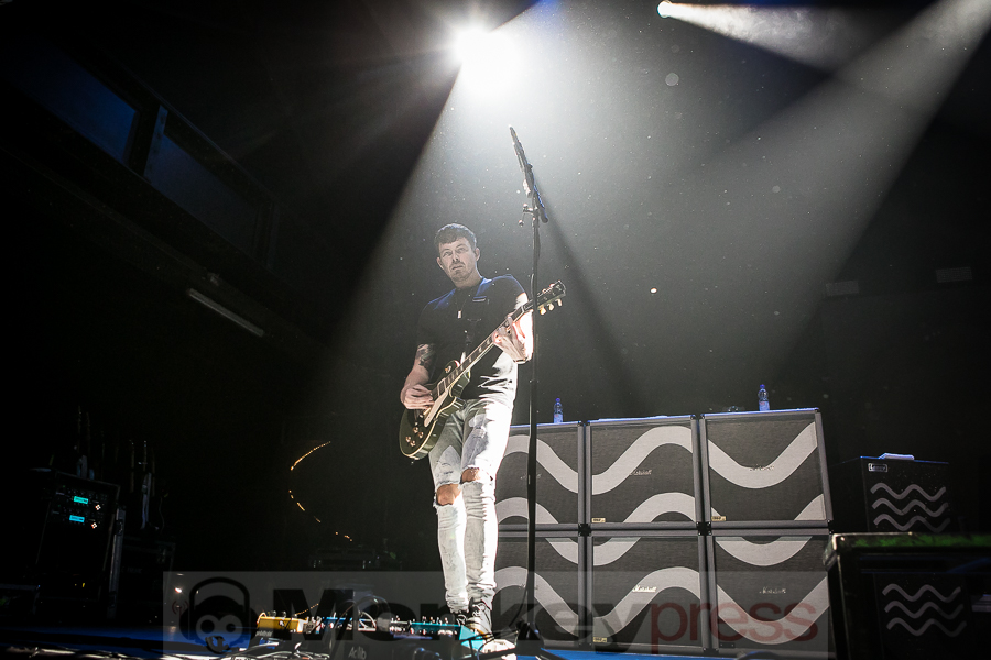 Halb zehn, endlich entern Enter Shikari (Muahahaha, was ein Wortspiel) die Bühne. Die ans Album-Artwork von The Spark angelehnte Stage-Deko war diesmal etwas spartanischer als bei der Mindsweep-Tournee. Irgendwie passend, kommt die Platte im Vergleich zu früheren Werken doch deutlich reduzierter und ruhiger daher. Fans vergrault hat das Quartett aus St. Albans dem ersten Anschein nach aber kaum. Sonst wäre der Mitsingchor beim Opener The Sights wohl nicht mal annähernd so laut gewesen. „Are you staying awake for the liftoff tonight?“