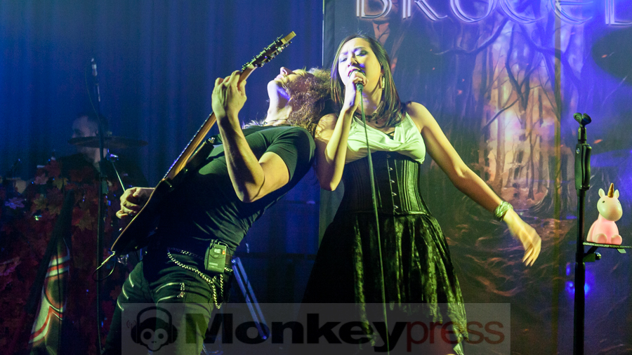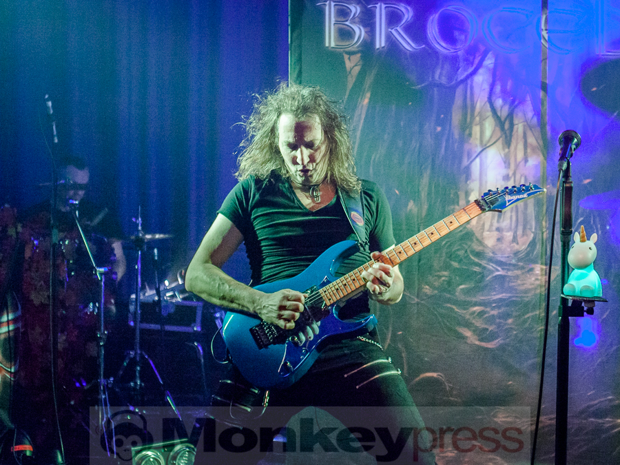 Den Opener gaben dabei Brocelian, die nach dem Intro mit Garden of Roses loslegten. Wuchtige Gitarren, hier noch im getragenen Tempo angesiedelt, trafen auf den eingängigen Gesang von Sängerin Susan, das Tempo wurde dann auch bald schon angezogen, was Stücke wie The Stratopop und Now it’s time zeigten. Auch auf die nächste CD gab es bereits Ausblicke, unter anderem Wrath of Nature, das mit zielstrebigen Gitarren, satten Hooklines vom Bass und peitschendem Schlagzeug die Grundlage für den Gesang herstellten, der mal sehr hoch und mal im „normalen“ stimmlichen Bereich lagen. Zudem floss ein Gitarrensolo mit ein. Nach Unbreakable war leider schon Schluss mit dem Auftritt von Brocelian, aber es wurde noch einmal alles gegeben. Beim nächsten Mal gerne länger.