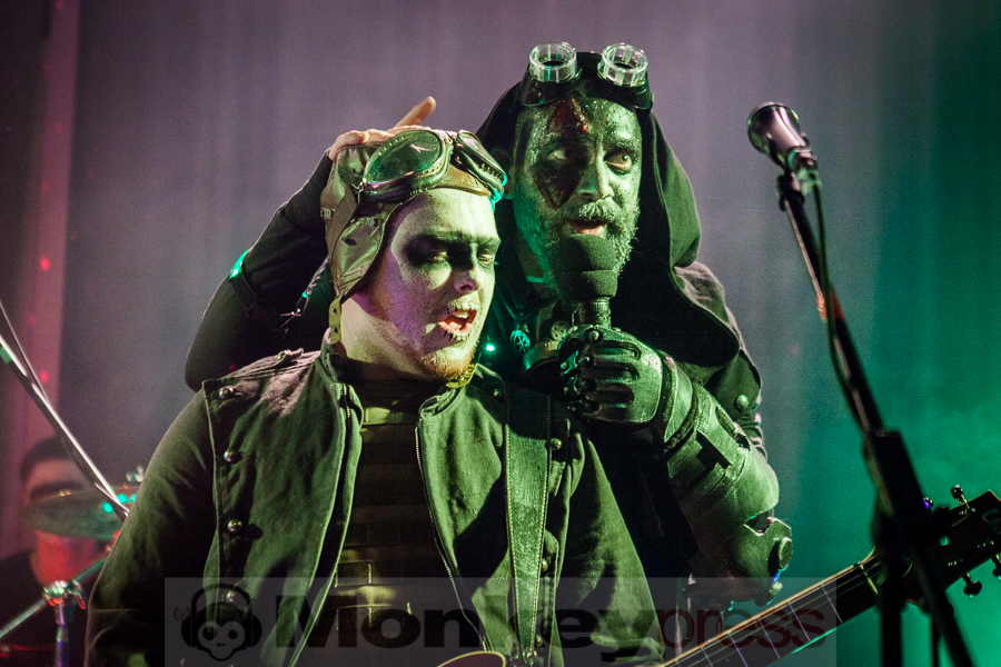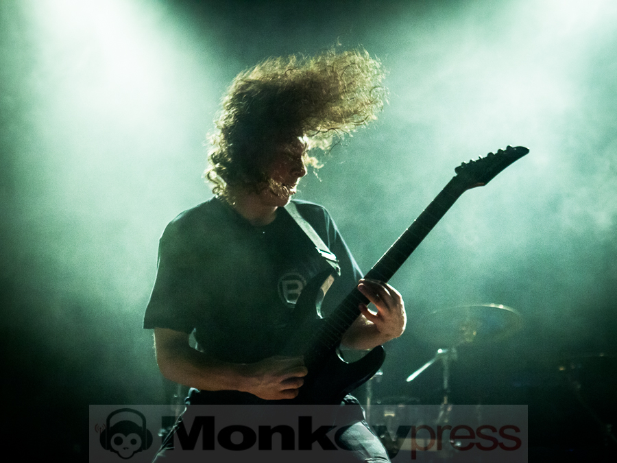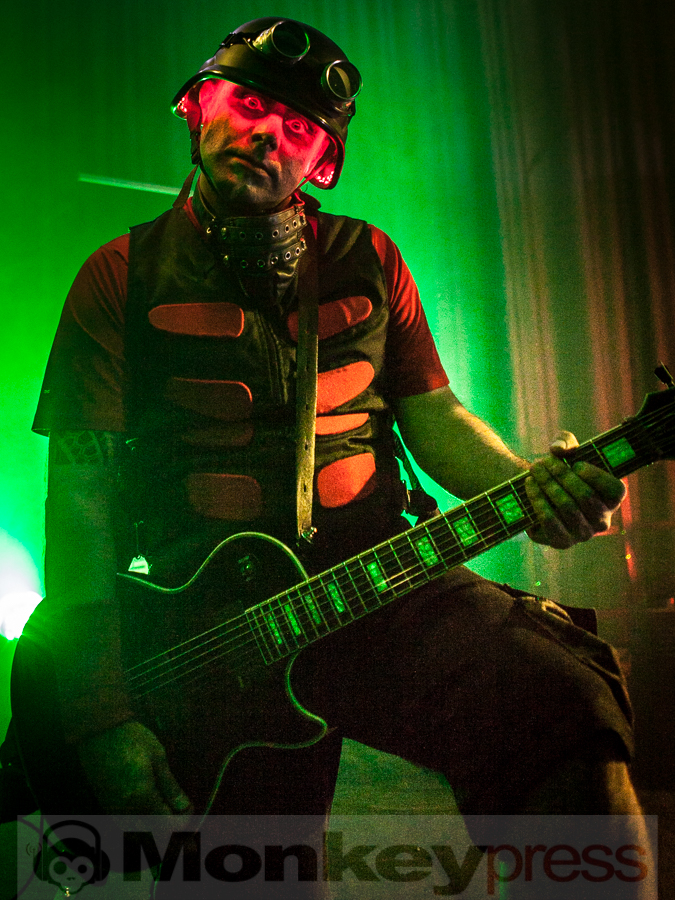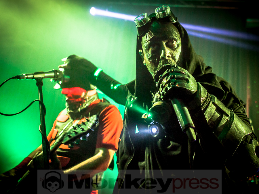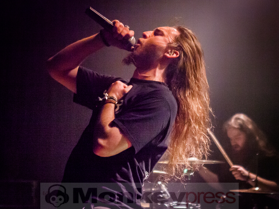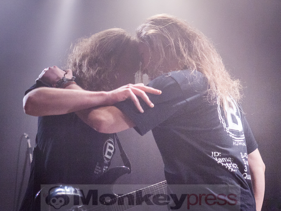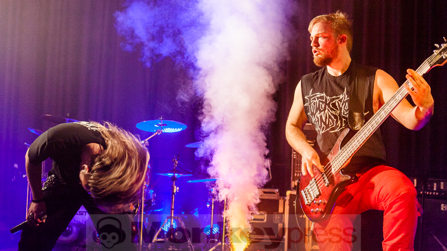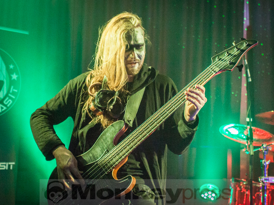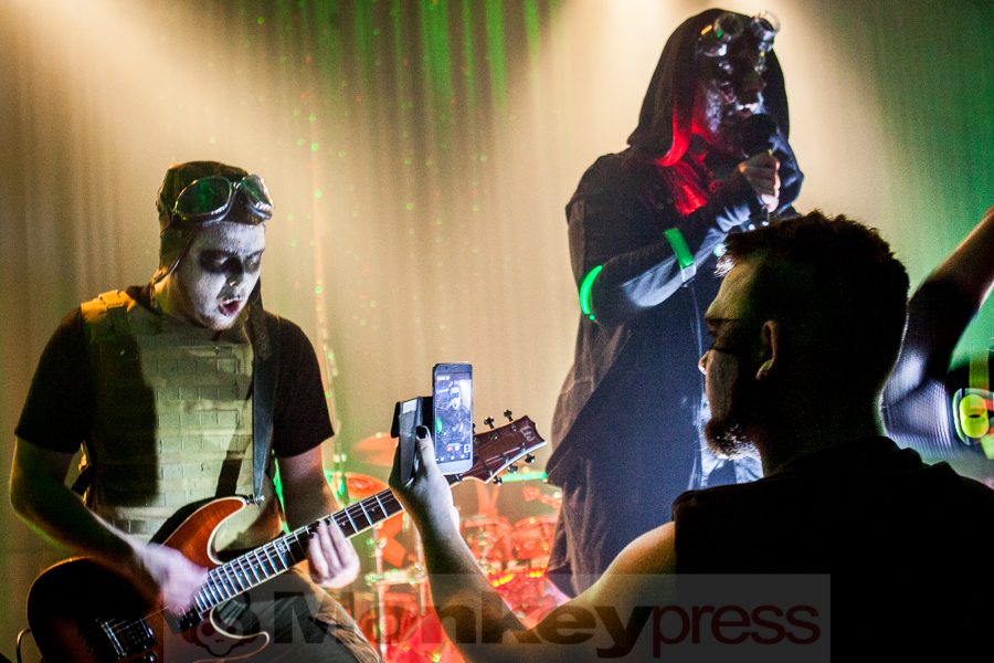 Zeit für den Headliner des Abends, Zeit für Herzparasit. Dieser kam zu den Klängen des Intros durch das Publikum auf die Bühne, wo sie mit Tastsinn ihr Set eröffneten. Der NDH-Sound ist schon hier nicht zu überhören. Gitarrenwände, Gesang zwischen Melodie und Shouts und ein schon zu diesem Zeitpunkt zufriedenes Publikum. Es dauerte nicht lange, bis das Eis gebrochen war. Die Freude am Riff war gut zu spüren, der Sound blieb druckvoll, Meine Träume jagen mir hinterher konnte ebenfalls überzeugen – mit Unterstützung von Sven Mehrens, der zuvor bereits mit Defated auf der Bühne stand. Ein gut gewählter Spannungsbogen, denn mir Präparat ging es hart weiter. Man merkte sowohl Band als auch Publikum an, dass sie hier gern dabei waren.