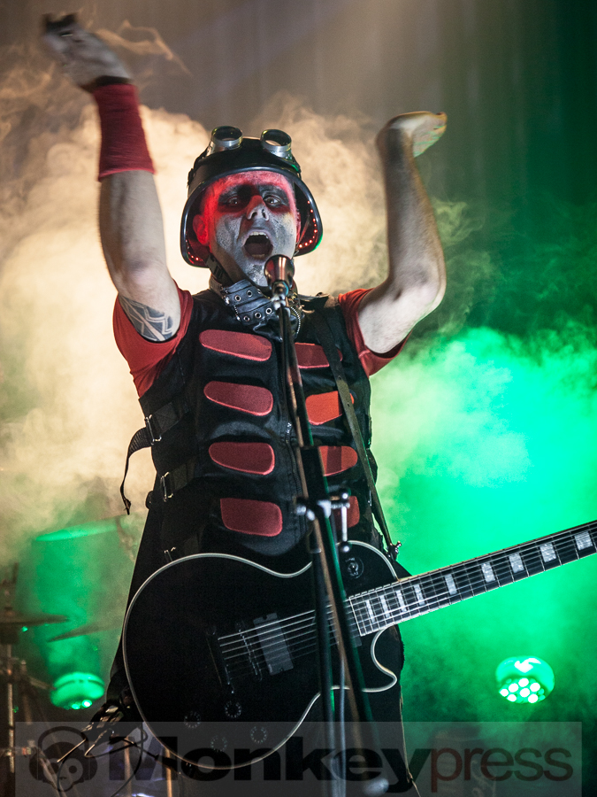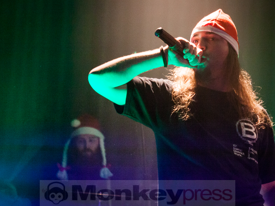 Es folgten Defated, die sowohl mit Härte als auch mit Tempo aufwarteten. Mit Duck & Run ging man direkt in die Vollen. Harte Riffs, rauer Gesang, gern auch mal mit Shouts, aber dennoch auch Eingängigkeit dabei. Das wurde in Stücken wie Utopia oder auch Core of Greed mehr als deutlich. Und weil es so kurz vor Weihnachten war, präsentierte die Band sich dem Anlass entsprechend mit Weihnachtsmannmützen, dazu wurde Schokolade ans Publikum verteilt. Das war es dann aber auch mit der Besinnlichkeit, die Musik war sicher vieles außer besinnlich, was sehr gut ankam. Vor der Bühne ging es rund, es wurden Haare geschüttelt und gepogt. Ganz eindeutig: Defated kamen sehr gut an beim Publikum, was auch der Applaus nach dem Set deutlich zeigte.