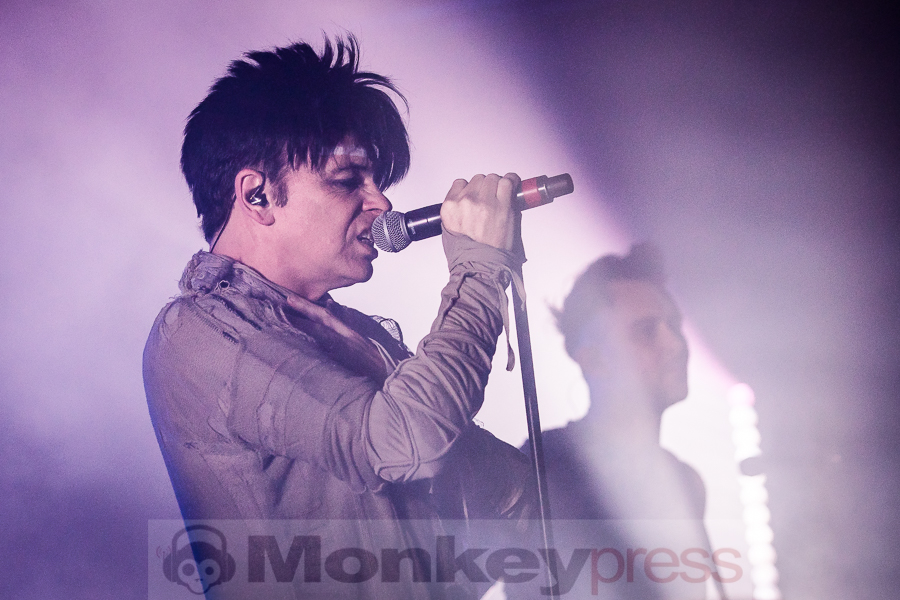 Ein gut aufgewärmtes Publikum wurde somit auf Gary Numan und seine Band losgelassen. Das Bühnenbild mit Videoscreen und LED-Säulen machte schon viel her, die Musiker im uniformen Savage-Outfit stützten diesen Eindruck. Optisch wurde also einiges geboten. Das Musikalische stand dem glücklicherweise in nichts nach. Dass der nunmehr 60-Jährige sicher nicht alle Passagen in den 90 Minuten live sang, war stellenweise deutlich hörbar und wurde nach dem Gig von mehreren Besuchern diskutiert – der Gesamteindruck hätte trotzdem kaum besser sein können. Akustik, Lichtshow, Songauswahl, Performance – hier passte alles. Kraftvolle (E-)Drums, beißende Synths und wuchtige Riffs sorgten dafür, dass selbst Songs wie das fast 40 Jahre alte Are Friends Electric? kein bisschen angestaubt klangen.