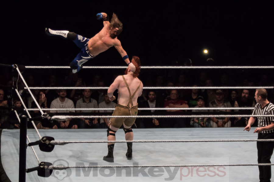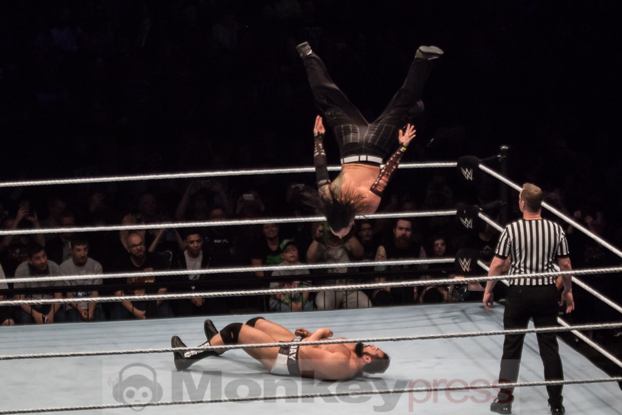 Die Stimmung blieb gut – dafür sorgten im Anschluss der Bulgare Rusev (der im Tag Team mit dem Bariton-Sänger und Ex-Opernmusiker Aiden English aktuell beliebt ist wie nie zuvor) und Wrestling-Legende Jeff Hardy. Auf irgendwelche atemberaubenden Sprünge aus zig Metern Höhe verzichtete Hardy – der aktuelle United States Champion konnte seinen Titel aber erfolgreich verteidigen.