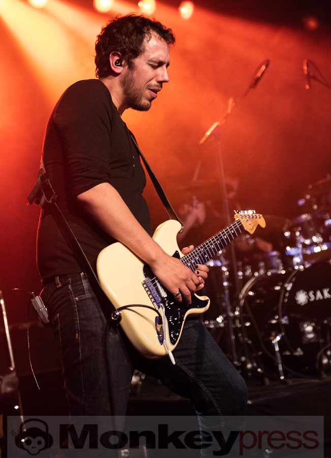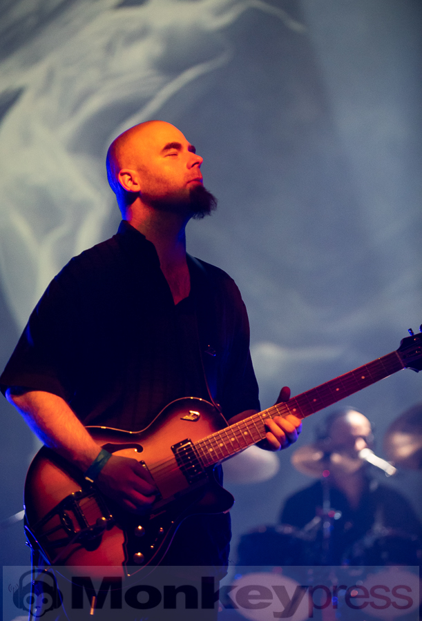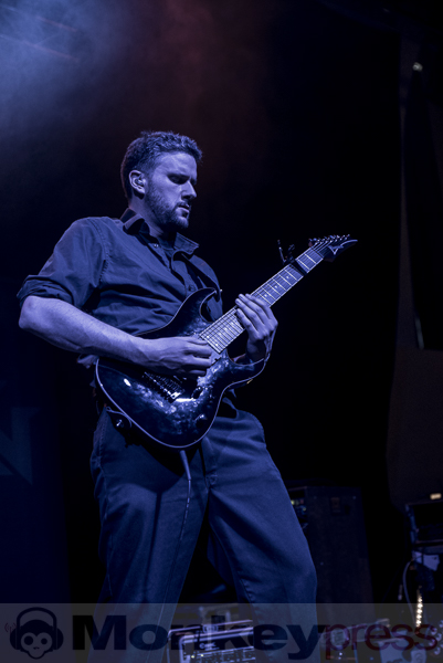 In der Umbaupause bleiben wir sitzen, um unsere Plätze nicht zu verlieren, denn im Schauspielhaus gibt es verständlicherweise keinen Graben. Viele der Besucher tun es uns gleich, deponieren aber Jacken und dergleichen auf den Sitzen, um sich noch ein Getränk zu holen oder das Gegenteil zu erledigen. Mir fällt eine ältere Dame mit elegantem auffälligem Hut auf. Sie ist sehr enttäuscht, ist doch in der ersten Reihe kein Platz mehr zu finden. Einer der gleich auftretenden Künstler sei nämlich ihr Sohn! Wir kommen ins Plaudern und ich erhalte jede Menge Informationen über die Entstehungsgeschichte von Neun Welten, die mir die Band auf einen Schlag noch viel sympathischer machen. So viel geballter Mutterstolz und musikalischer Sachverstand nötigen mir Respekt ab und ich biete der Dame meinen Platz an. Sie winkt ab: “Nein”, meint sie, “schreiben Sie bitte einen schönen Bericht und achten Sie auf den jungen Mann an der Gitarre. Er spielt auch Cello.” Ok, na dann. Bis zu ihrem aktuellem Album The Sea I’m Diving In haben sich Neun Welten vorrangig durch naturmystische, märchenhaft und ätherische-träumerische Instrumentalstücke ausgezeichnet. Das neue Album kann man durchaus als Zäsur bezeichnen: der Gesang tritt stärker in den Fokus und Post- und Progressiv-Rock Elemente haben bei den Leipzigern Einzug erhalten. Auf der Bühne ist auf einen Blick sichtbar, wie selbstverständlich die Künstler aufeinander eingespielt sind und wie lange sie sich schon zu kennen scheinen. Das Spiel von Neun Welten hat etwas durchaus Entrücktes, aber auf eine natürlich selbstgenügsame Art, als wäre das Publikum nur zufällig beim Zusammenspiel der Musiker anwesend. Der Sound ist vielschichtig und artifiziell, ohne jedoch eine Sekunde abgehoben oder prätentiös zu wirken. Alles scheint selbstverständlich und fließend. Neue und ältere Stücke wurden perfekt aufeinander abgestimmt. Man hat das Gefühl ihnen ewig zuhören zu können. (KS)