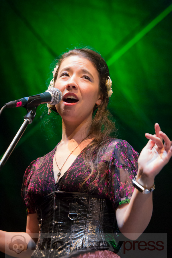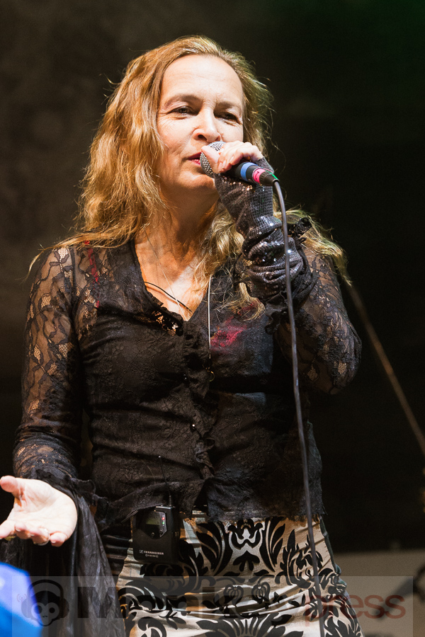 Die Band, die grob dem Avantgarde-Mittelalter Elektro zugeordnet werden kann, beginnt mit leichter Verspätung. Das Heidnische Dorf ist erwartungsgemäß brechend voll, aber die Sonne geht gerade unter und taucht alles in mystisches Zwielicht – wie geschaffen für ätherischen Klänge des außergewöhnlichen Künstlerkollektivs. Passend dazu sind die Fans und Besucher in den ersten Reihen auch mit stilvollen historischen Gewandungen angetan und hätte Qntal bei ihrer Musik nicht diesen unverkennbaren elektronischen Einschlag, hätte man den Eindruck, der Auftritt wäre seltsam aus der Zeit gefallen. Im März erschien VIII – Nachtblume – ein Album, mit dem Qntal durchaus nach alten Wurzeln greift, sich erfrischend wieder mehr von anderen Mainstream-Mittelalter-Combos abwendet, aber noch nicht ganz die Qualität von Qntal I & II erreicht (Aber diese Zeiten sind unwiederbringlich vorbei. Man sollte sie ruhen lassen.). Man eröffnet sogleich dann auch mit dem Titelsong und Zauber legt sich über das Heidnische Dorf. Im weiteren Verlauf sind es vor allem die historischen Instrumente, die Michael Popp aus dem FF beherrscht und die artifiziellen Melodie-Arrangements, die beeindrucken. Besonders ist es das Zusammenspiel von Sigrid Hausens (Syrah) dunklem, kehligen Mezzosopran und Sarah Newmans (Mariko) hellem, filigranem Sopran, das die Zuhörer in andere, märchenhafte Dimensionen entführt. (DS)