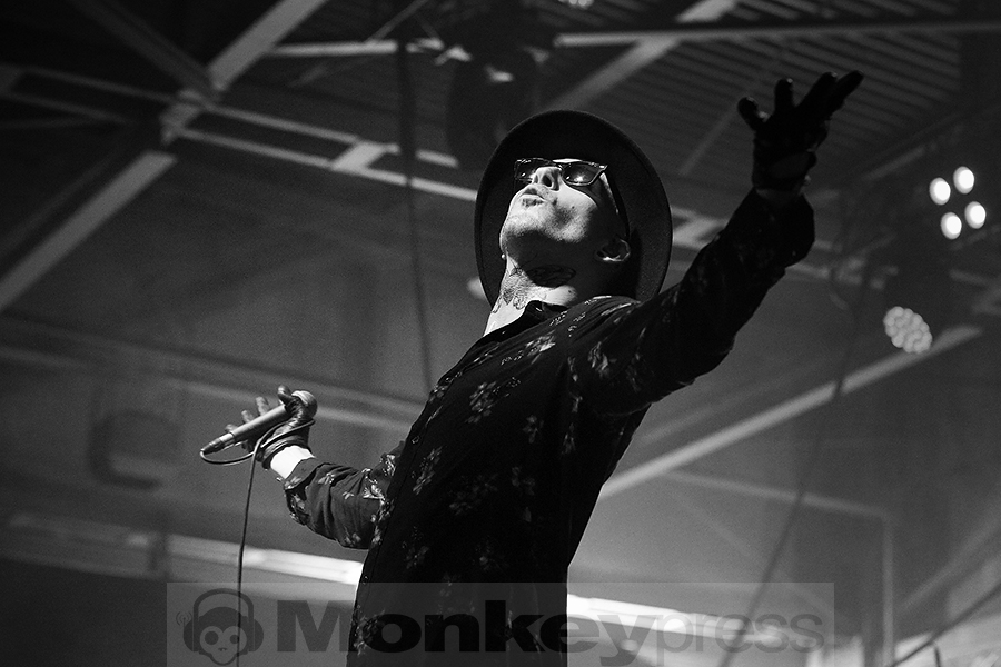 Viele Freunde des harten Elektros gingen nun noch einmal zum Headliner in den Hangar, den Hocico traten an. Live-Drums, Racso an der Elektronik und ein gut aufgelegter Erk Aicrag, der hier nach dem Rabia Sorda-Set am Vortag seine zweite Schicht hatte. Müdigkeit steckte ihm merklich nicht in den Knochen, so wie er sich hier über die Bühne bewegte. Somit konnte er die Stimmung gut anheizen, die bei Hocico-Fans sowieso bereits sehr gut ist, wenn Klänge der Marke Sex Sick und Bite Me! zu hören sind. Dabei gelang es, die Stimmung immer weiter zu steigern, mit Stücken wie Ecos und Poltergeist ging es langsam Richtung Finale, bei dem mit Forgotten Tears und Tiempos de Furia noch einmal alles gegeben wurde. Ein würdiger Hangar-Headliner!