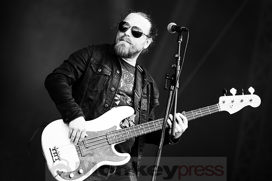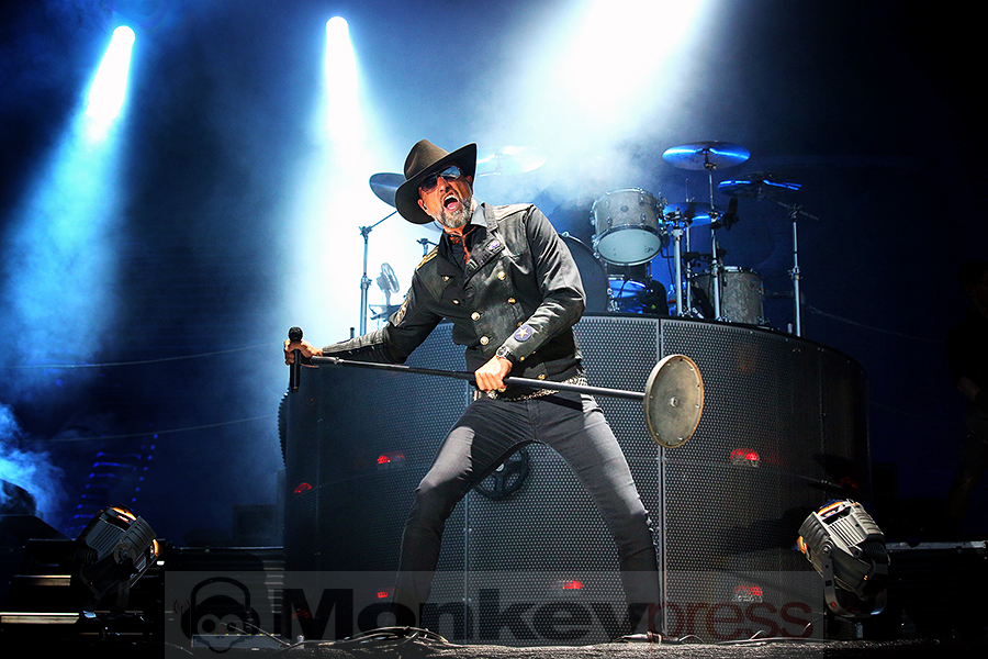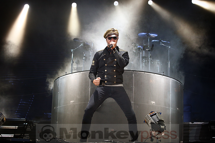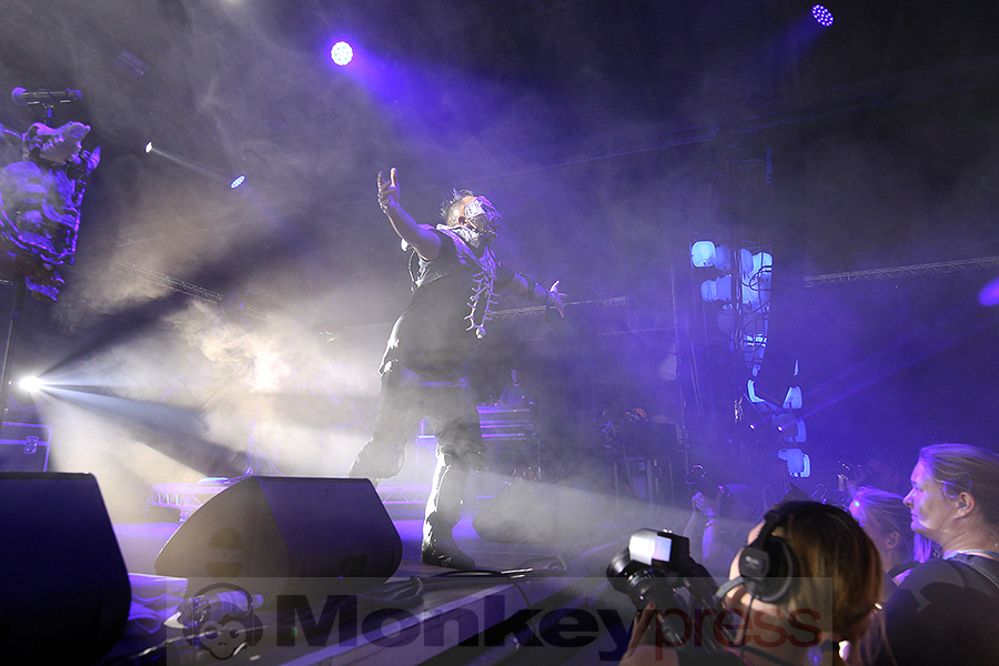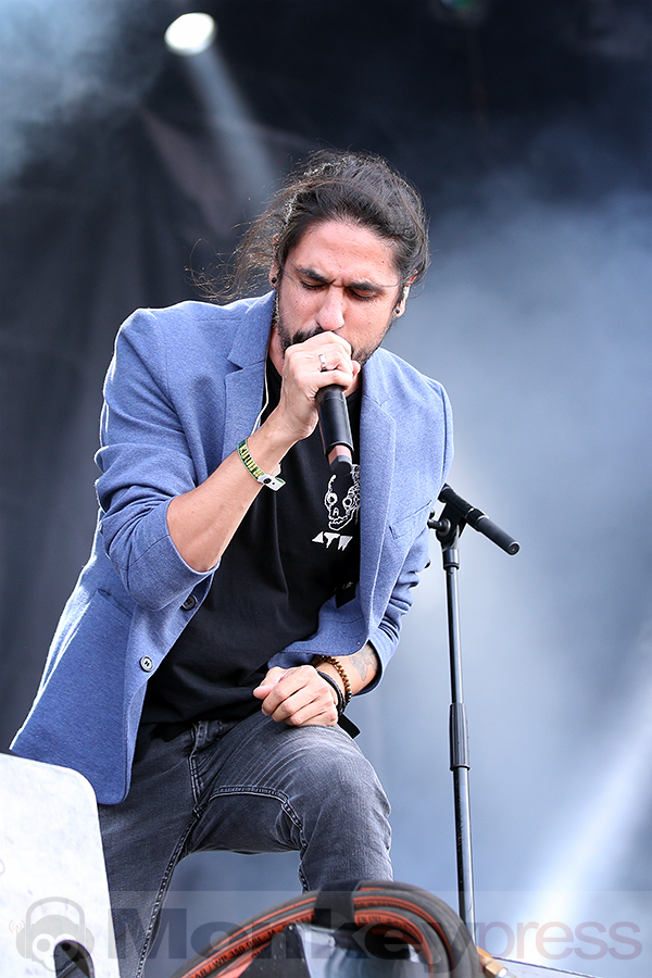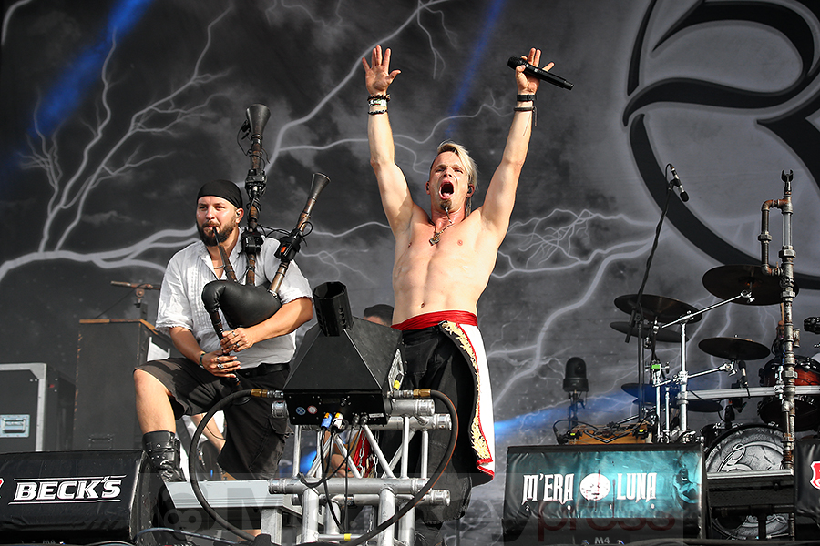 Konstrastreich ging es weiter auf der Hauptbühne mit Saltatio Mortis. Der Publikumsaustausch war merklich, denn der mittelalterliche Rock mit seinen Dudelsäcken und Sackpfeifen spricht eben doch eine andere Zielgruppe an, wie man ja auch am Vorabend bereits bei In Extremo gemerkt hat. Aber durchaus wissen Saltatio Mortis, wie man ein Publikum bei Laune hält, machen zwischen den Stücken wie Wo sind die Clowns?, Prometheus und wie sie alle heißen humorige Ansagen und haben auch viele Show-Elemente in petto. Wenn man von Nähe zum Fan spricht, so kann man dies bei Saltatio Mortis auch wörtlich sehen, denn Sänger Alea springt auch gerne mal ins Publikum und lässt sich von ihm tragen, wie er es auch in Hildesheim tat. Eine kurzweilige Stunde für Fans des mittelalterlichen Rocks.