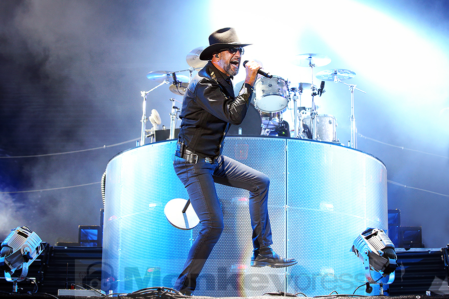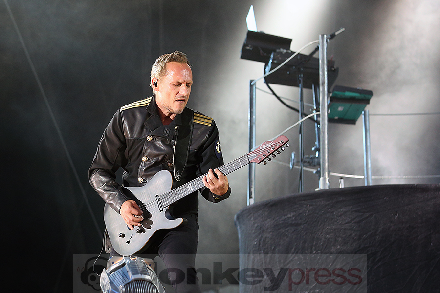 Wer seinen Elektro gerne etwas härter genießt, ging schnell rüber zur Hangar-Bühne, denn mit Aesthetic Perfection war die Melange aus Härte und elektronischer Tanzbarkeit gewohnt gegeben. Auch wenn sich Sänger Daniel Graves eher als einen zurückhaltenden Typen ansieht, so ist auf der Bühne kaum zu bremsen. Knallhart ging es los mit A Nice Place to Visit und The Great Depression, bei denen man direkt merkt, dass die Band längst ein gern gesehener Gast hier ist. So spielen sich die Musiker durch die verschiedenen Schaffensphasen, auch die von manchen kritisierte poppige Schlagseite bei Stücken wie Ebb and Flow oder auch LAX tat der guten Stimmung keinen Abbruch. Diese waren in einen guten Spannungsbogen eingewoben, bei dem das Set mit erneut mit Härte in Form von Spit it Out beendet wurde.