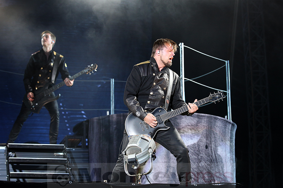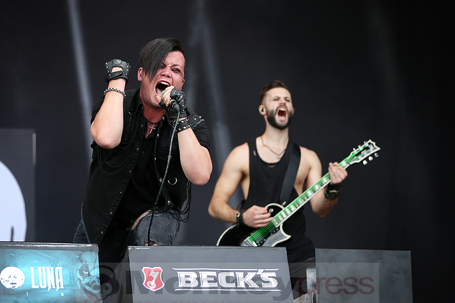 Schattenmann als Opener konnten bereits eine beachtliche Menge an Leuten vor die Bühne ziehen, die merklich auch wirklich für sie gekommen waren. Die schnelle NDH-Nummer Brennendes Eis eröffnete den zweiten Festivaltag angemessen und der Bitte „tanz, tanz“ wurde gerne nachgekommen. Hin und wieder ein Knall dazu, denn was spricht morgens um elf schon gegen Pyro-Effekte? Mit Gekentert gab es eine eingängige Ballade, bevor mit Generation Sex und AMOK die provokanteren Stücke dargeboten wurden. Gerade bei letzterem wurde man erneut überrascht von der Bühnenshow – eine gefakete Sprengstoffjacke ist die eine Sache, aber dass Sänger Frank Herzig auf einmal mit einer Kettensäge auf der Bühne steht, war unerwartet. Mit dem Titeltrack des aktuellen Albums Licht an ging ein gelungener Auftritt leider viel zu schnell zu Ende.
