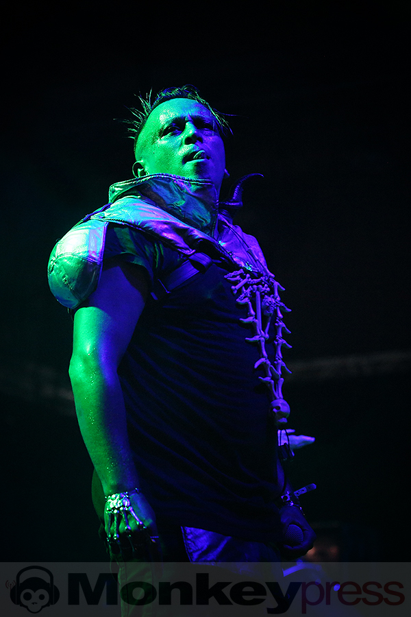 Eine Band, die im Umfeld des M’era Luna Festivals vielleicht ungewöhnlich wirken mag, stellte sich im Anschluss im Hangar als Glücksgriff heraus. Das M’era Luna-Publikum feierte den Abriss, den Atari Teenage Riot hier boten, euphorisch. Der „digital hardcore“, wie die Band ihn selbst bezeichnet, ging in Mark und Bein, es war laut, es war wild. Geschredderte Sounds, schnell Bässe, Shouts von Alec Empire und Nic Endo und ein Programm mit Nummern der Marke Destroy 2000 Years Of Culture, Into The Death und No Remorse. Die Sounds der Band haben eindeutig mit all den Jahren nichts von ihrer Wirkung verloren und haben auch weiterhin Aussagekraft. Als Alec Empire noch einmal die Hintergründe der einstigen Gründung von Atari Teenage Riot erklärte, merkte man direkt, wie wichtig diese Inhalte auch gerade heute noch sind. Ohne drei Stücke Zugabe ging am Ende folglich nichts.
