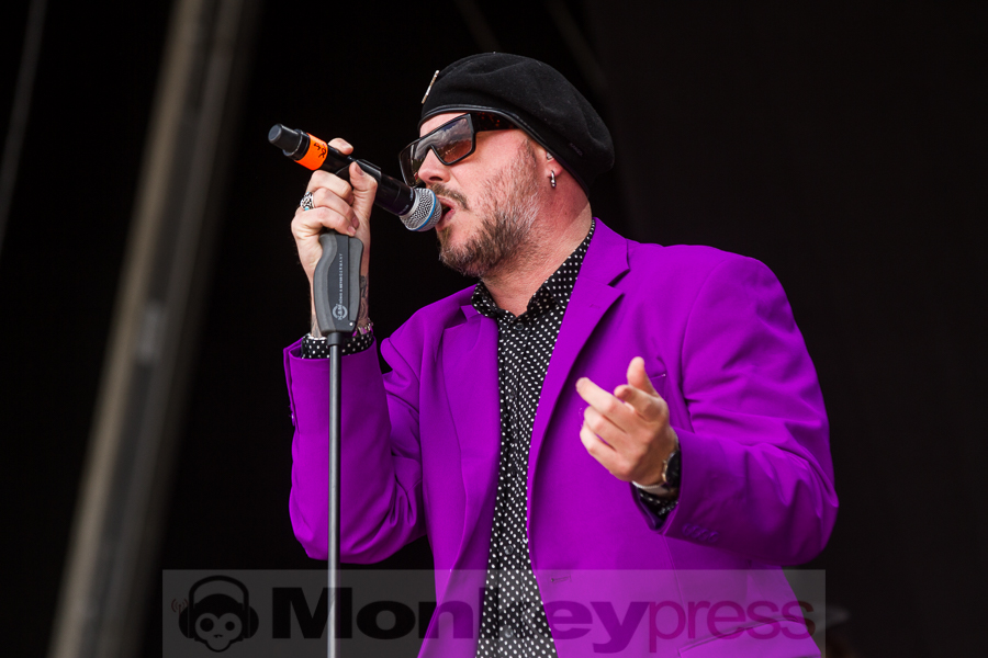 Glücklicherweise blieben die Reloadbesucher von übermäßigem Regen den Rest des Tages über verschont, auch wenn es noch den ein oder anderen kleinen Schauer gab. Immerhin erübrigte sich damit die Staubproblematik des Vortages. Erstes Highlight waren The Night Flight Orchester, die sowohl optisch als auch musikalisch aus dem Line-Up herausstachen. Die hochkarätig besetzte Band verbreitete gute Laune und sorgte für Stimmung auf dem mittlerweile ordentlich gefüllten Gelände. Härter ging es mit dem Duo Mantar weiter, die zu zweit in der Lage sind einen fetteren Sound zu erzeugen, als so manches Quintett. Kein Wunder also, dass sie mittlerweile in aller Munde sind.
