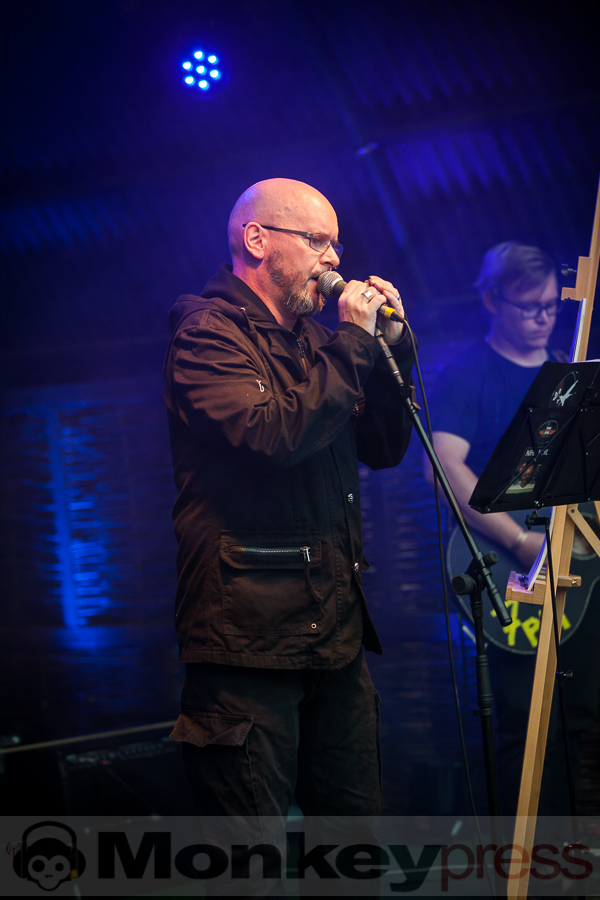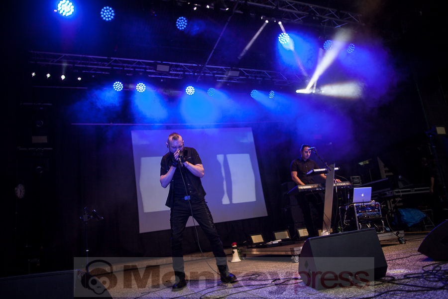 Anhänger ausgefeilter elektronischer Musik kamen gegen 21:30 Uhr auf ihre Kosten. Auf der Parkbühne erwartete die Gäste Clock DVA. Die Band wurde 1978 von Adi Newton und Steven Turner gegründet. Zahlreiche Alben erschienen in den 1980ern und frühen 90er Jahren. Stilistisch ist Clock DVA zwischen Industrial, Post-Punk und Ambient einzuordnen. Die Bühne war nun komplett dunkel. Lediglich die Videoleinwand lieferte das Licht und das passende Ambiente. Clock DVA ist mittlerweile nur noch selten live zu sehen. Auf dem NCN, war es also noch einmal eine gute Gelegenheit, für dieses selten gewordene Ereignis.