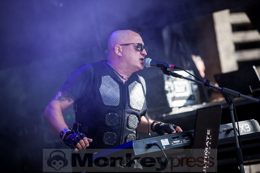 Im Kulturpark dämmerte es bereits, als Gothminister die Amphibühne betraten. Das Gothic-Metal-Projekt war im Jahre 1999 zunächst ein Soloprojekt von Bjørn Alexander Brem, wuchs aber im Laufe der Jahre immer mehr zu einer Band heran. Gothminister verbreiteten bei gedämpftem Licht dunkle Stimmung. Die Besucher kamen jetzt an den Bühnenrand und beobachteten die düstere Horrorshow. Zeitgleich spielten The Devil And The Universe auf der Kulturbühne. Das Minimal-Wave Projekt existiert seit 2013. Musikalisch bewegt sich das Projekt zwischen New Wave, Black Metal und Ritual. Dicht gedrängt standen die Fans bis in die hinteren Reihen. Gespannt hörten sie die Musik, welche von einer passenden Videoshow untermalt wurde.