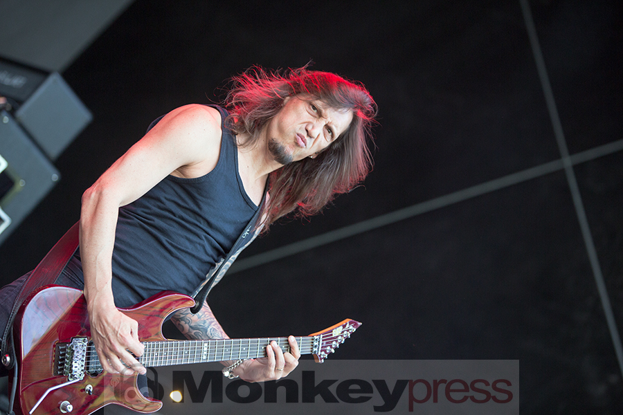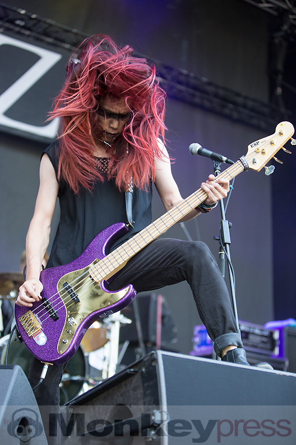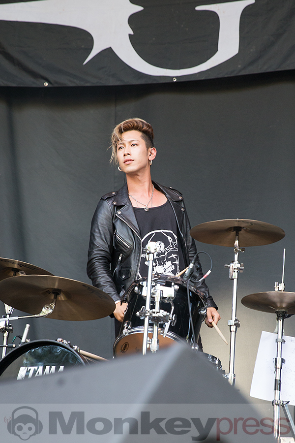 Erst mit Delirious hat man den Eindruck, dass zwischen Publikum und Bühne nun der Funke übergesprungen ist. Und genau hier steigen wir auch mit unserem Bericht des zweiten Tages ein. Der Trash-Metal aus Hamm und ein paar Biere weiter herrscht wieder ein guter Stimmungspegel. Gerade rechtzeitig um die Exoten Gyze aus Japan in Essen begrüßen zu dürfen. Die zwei Shinomoto Brüder und Aruta Watanabe liefern sehr guten englischsprachigen Death-, Melodic-, Power-Metal ab. Auch optisch stechen die drei aus dem Rest der Bands heraus. Es macht irre guter Laune Gyze zuzuhören und zuzuschauen. Das lockt dann auch den letzten von seinem gemütlichen Chill-out Platz vor die Bühne.