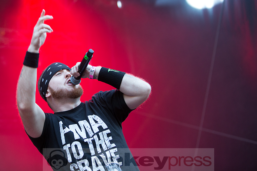 Als vorletzter Act an diesem Abend steht Jasta alias Jamey Jasta und Bandmit einer kleinen Armada von Gastmusikern auf der Bühne. Der US-amerikanische Metal-, Sludge Sänger, auch bekannt als Leadsänger der Band Hatebreed sorgt mit Metalcore für erneute Abwechslung.
