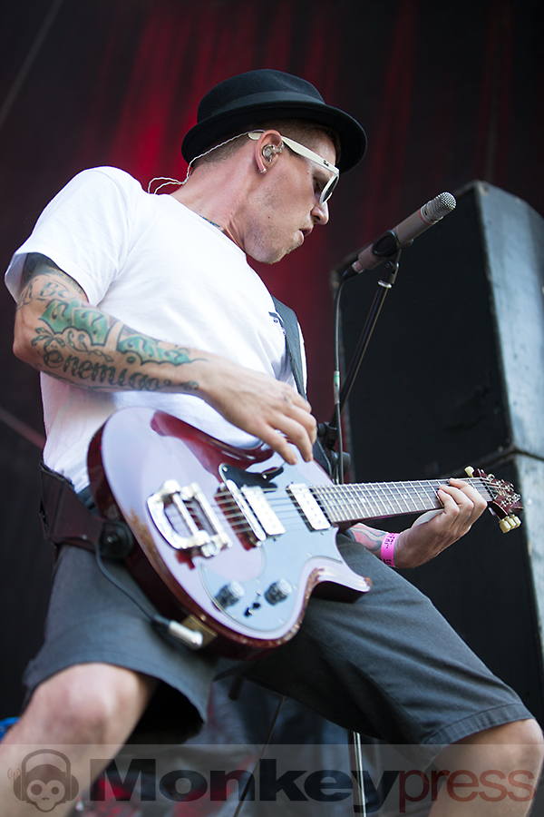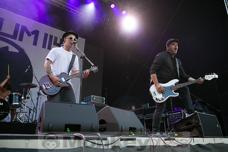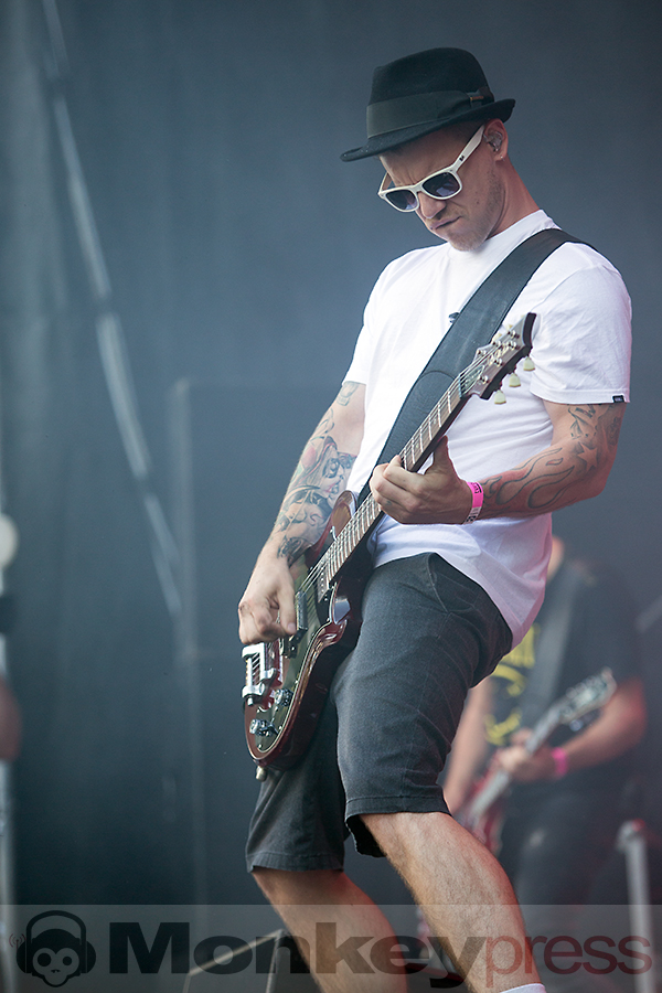 Kommen wir zum Punk, der an diesem Tag mit zwei Bands der Extraklasse besetzt ist. Serum 114, eine Band, von der ich schon viel gehört habe, durfte ich nun endlich auch mal live erleben. Die Frankfurter wurden mir schon oft empfohlen, und das mit recht. Mit guten Texten und ordentlichem Punkrock verstehen sie zu begeistern und das Publikum mitzureißen. Sie lieben und leben den Punk und das kommt an und rüber. Auch wenn der Viehofer Platz nicht vollständig gefüllt ist, so ist die Stimmung grandios. Zum Ende hin nimmt Sänger Esche ein Bad in der Menge, um beim Crowdsurfing ein Bierchen zu genießen.